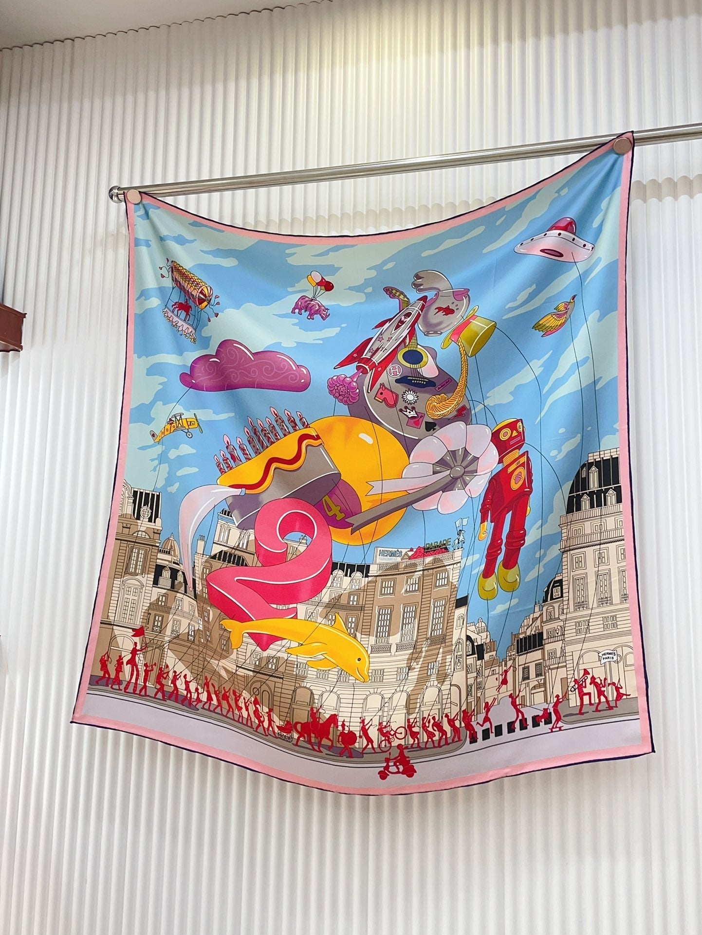 Parade Scarf 90 CM In Light Blue Colorful Silk Twill 310305