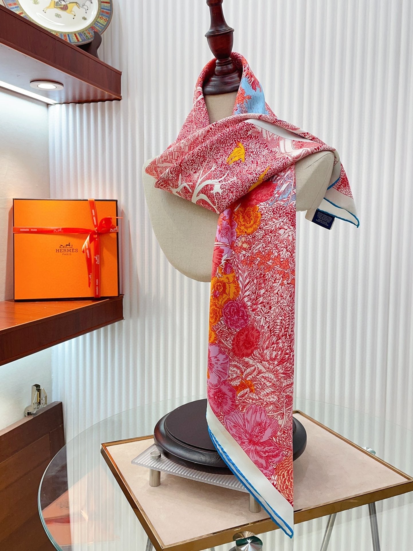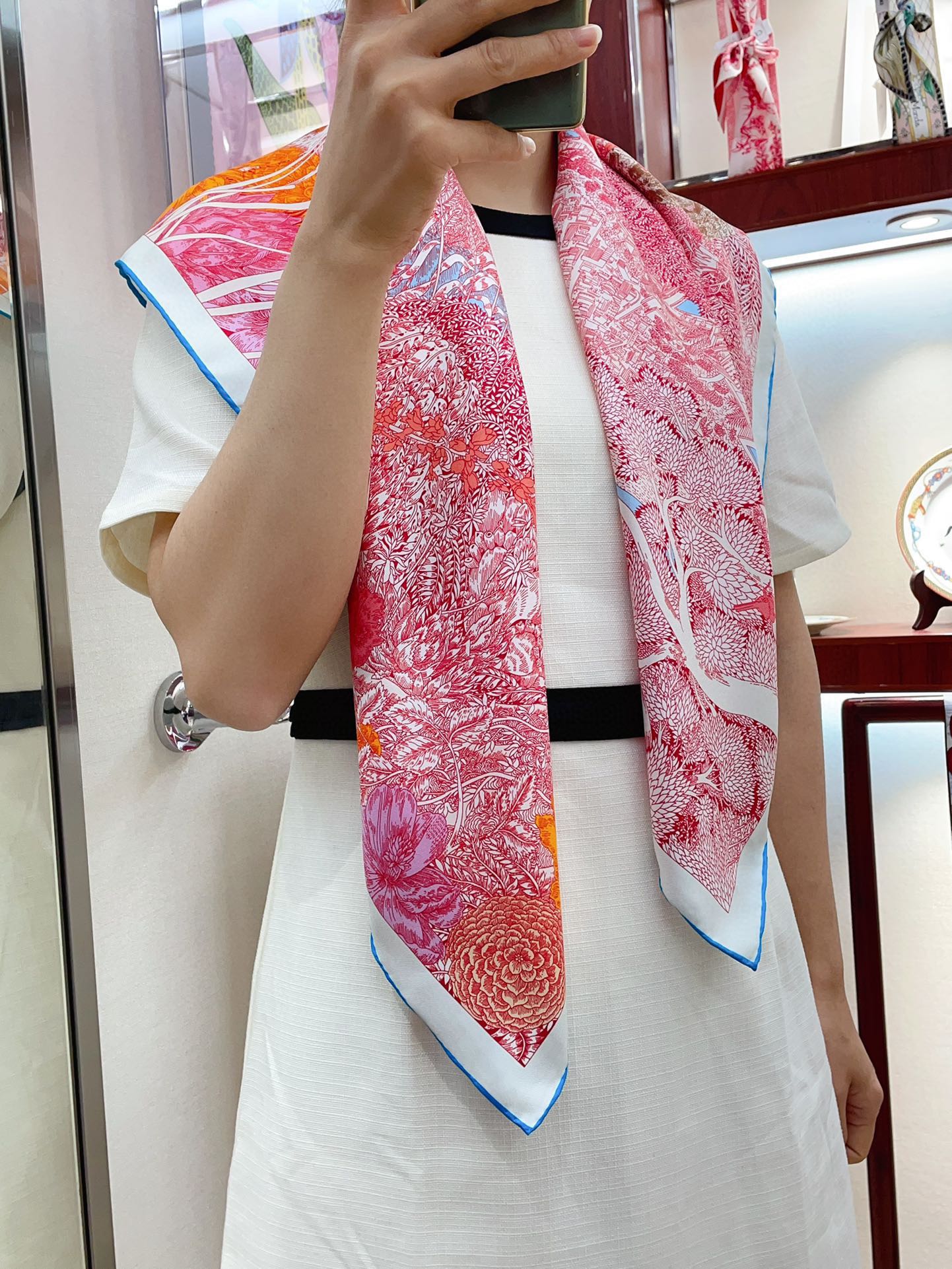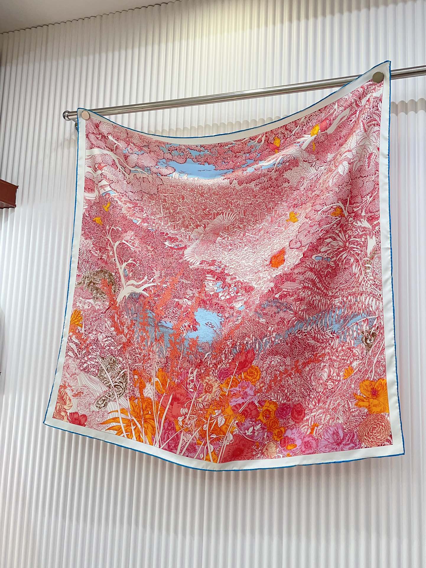 Retour A La Nature Shawl 90 CM In Pink Colorful Silk Twill 198584