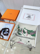 Scarf 110 CM In White Colorful Voile Silk 193825