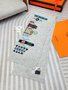 Scarf 120 CM In White Grey Hand Woven Cashmere 401166