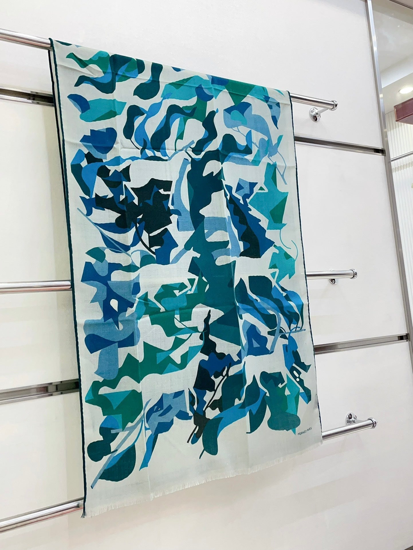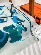 Scarf 180 CM Blue Green Colorful Mashmere And Silk 403886