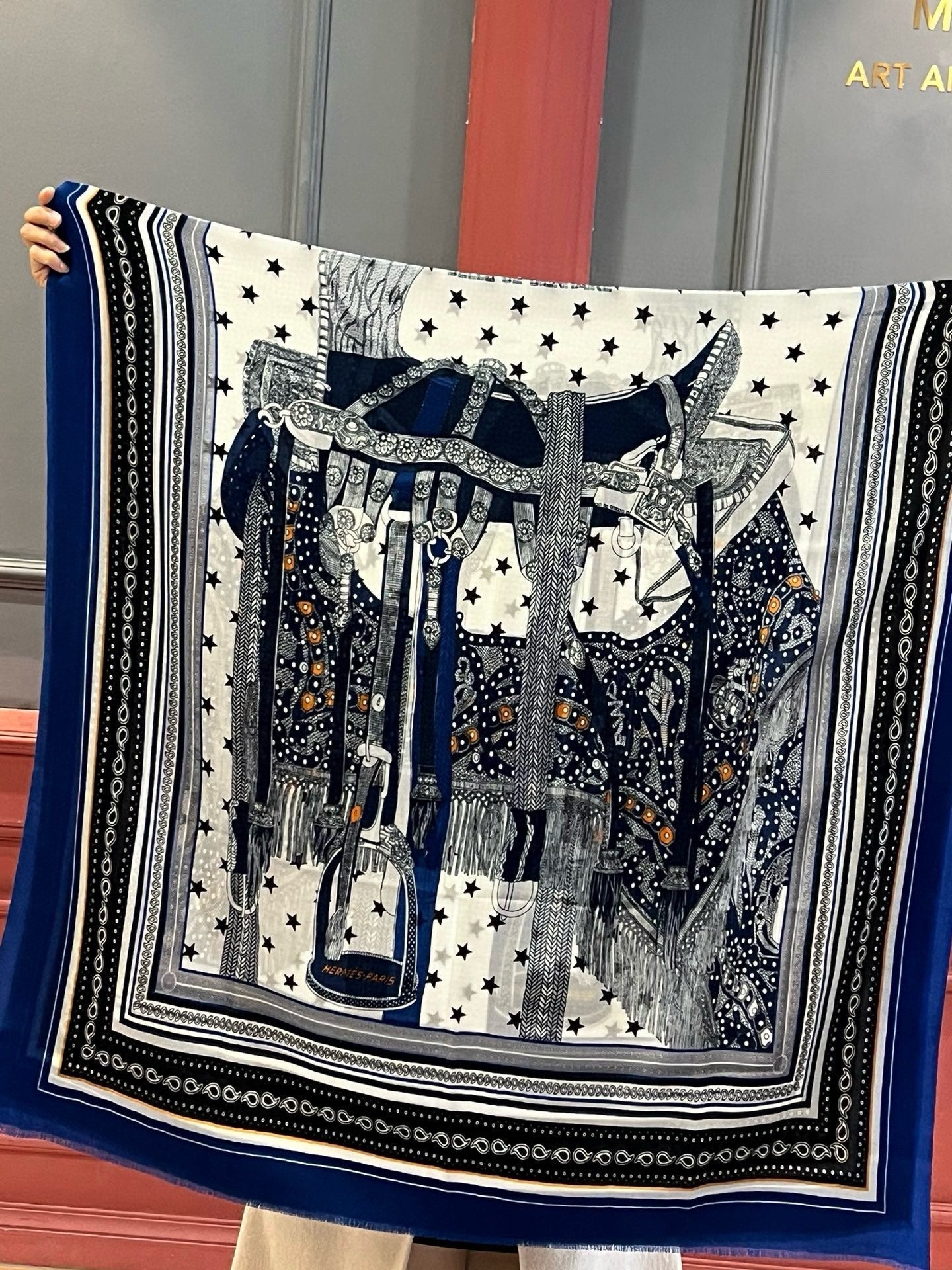 Selle De Dignitaire Bandana Shawl 200 CM In Blue Colorful Cashmere 265334