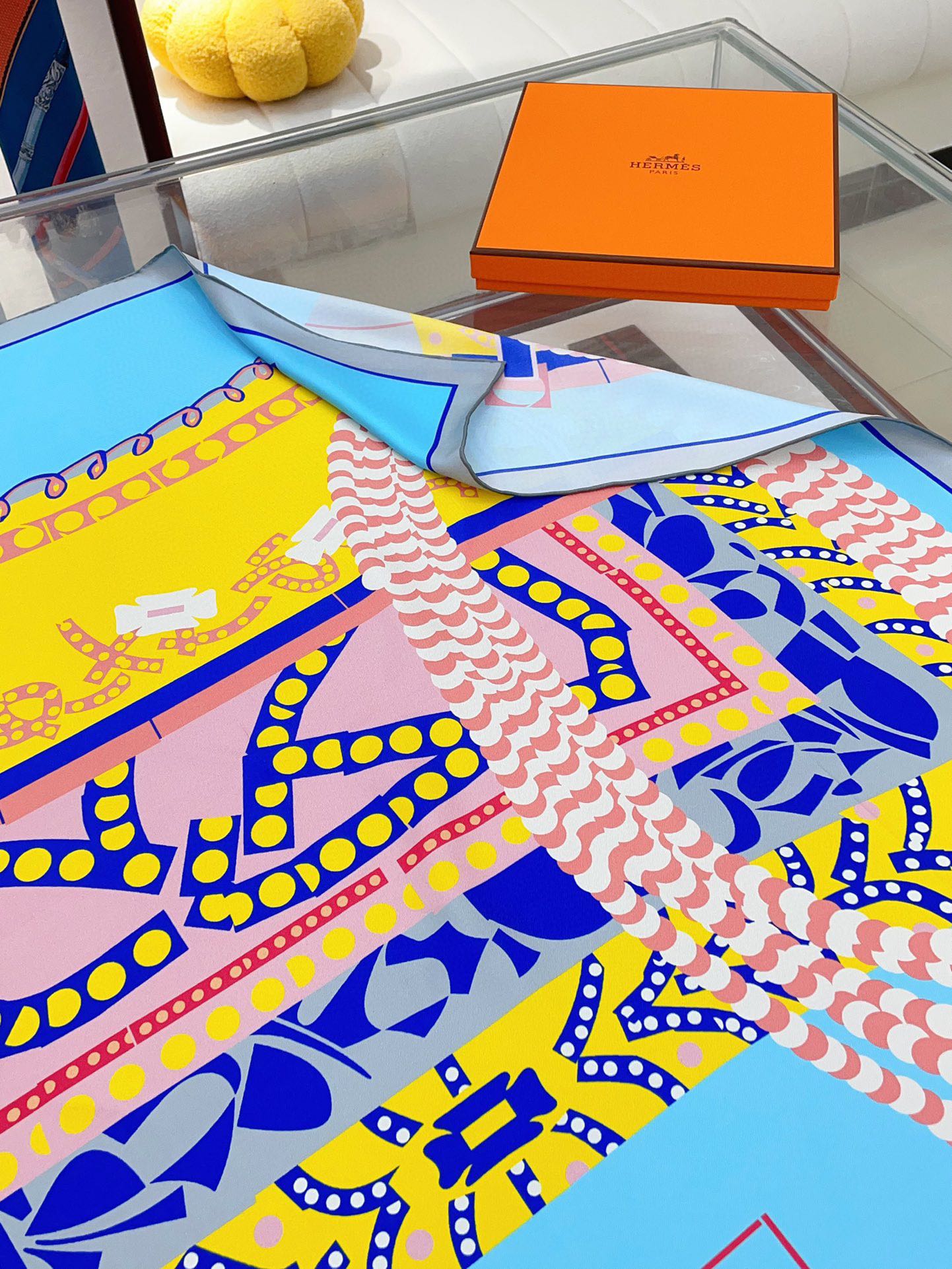 Silla De Gaucho Scarf 90 CM In Light Blue Colorful Silk Twill 231854