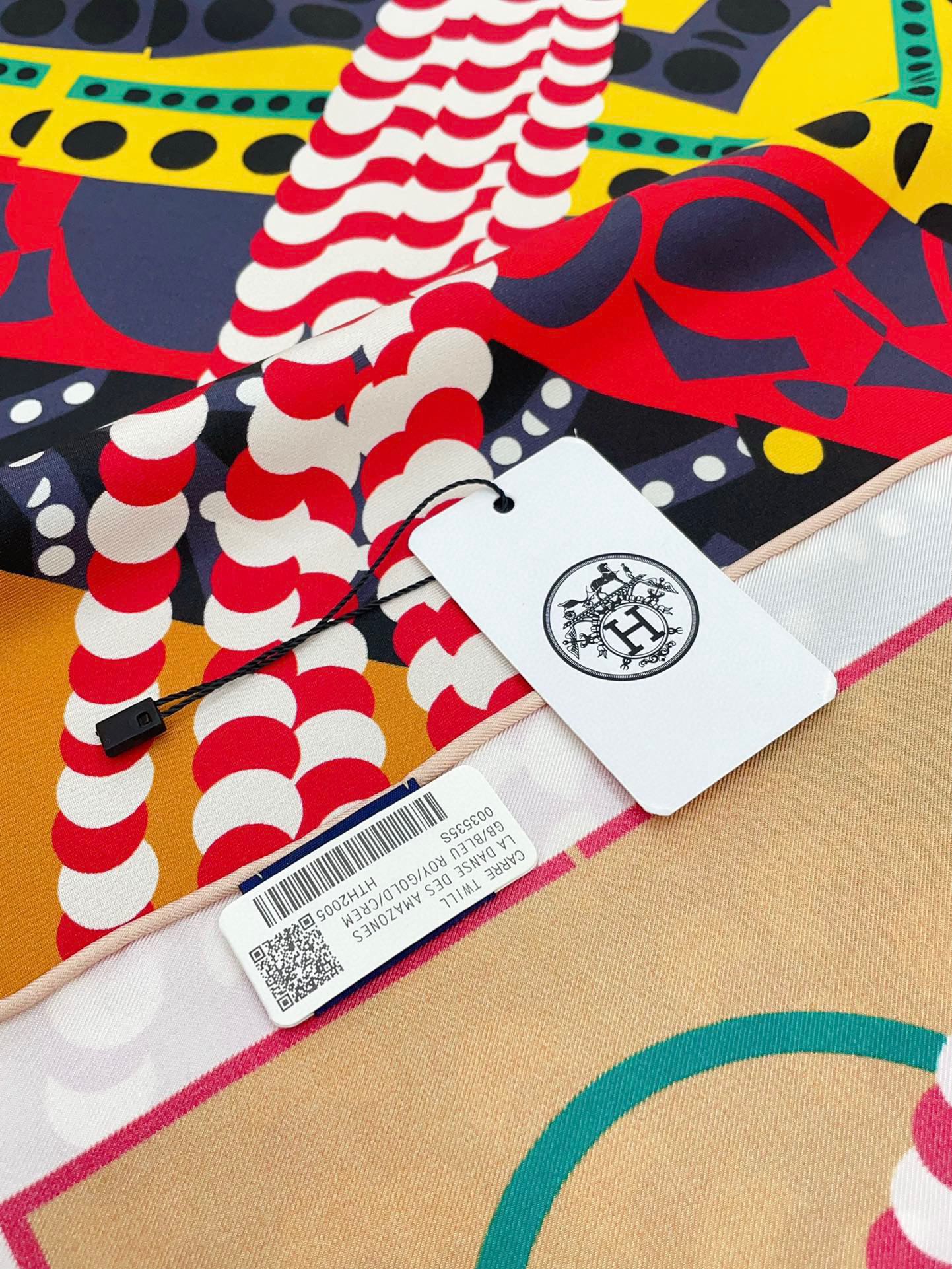 Silla De Gaucho Scarf 90 CM In Yellow Orange Colorful Silk Twill 320652