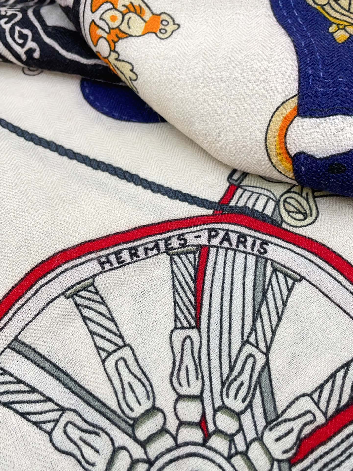 Stately Wheels Scarf 140 CM White Colorful Cashmere And Silk 394588