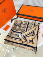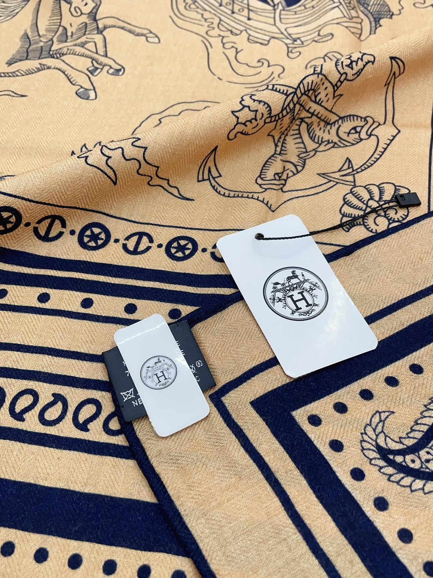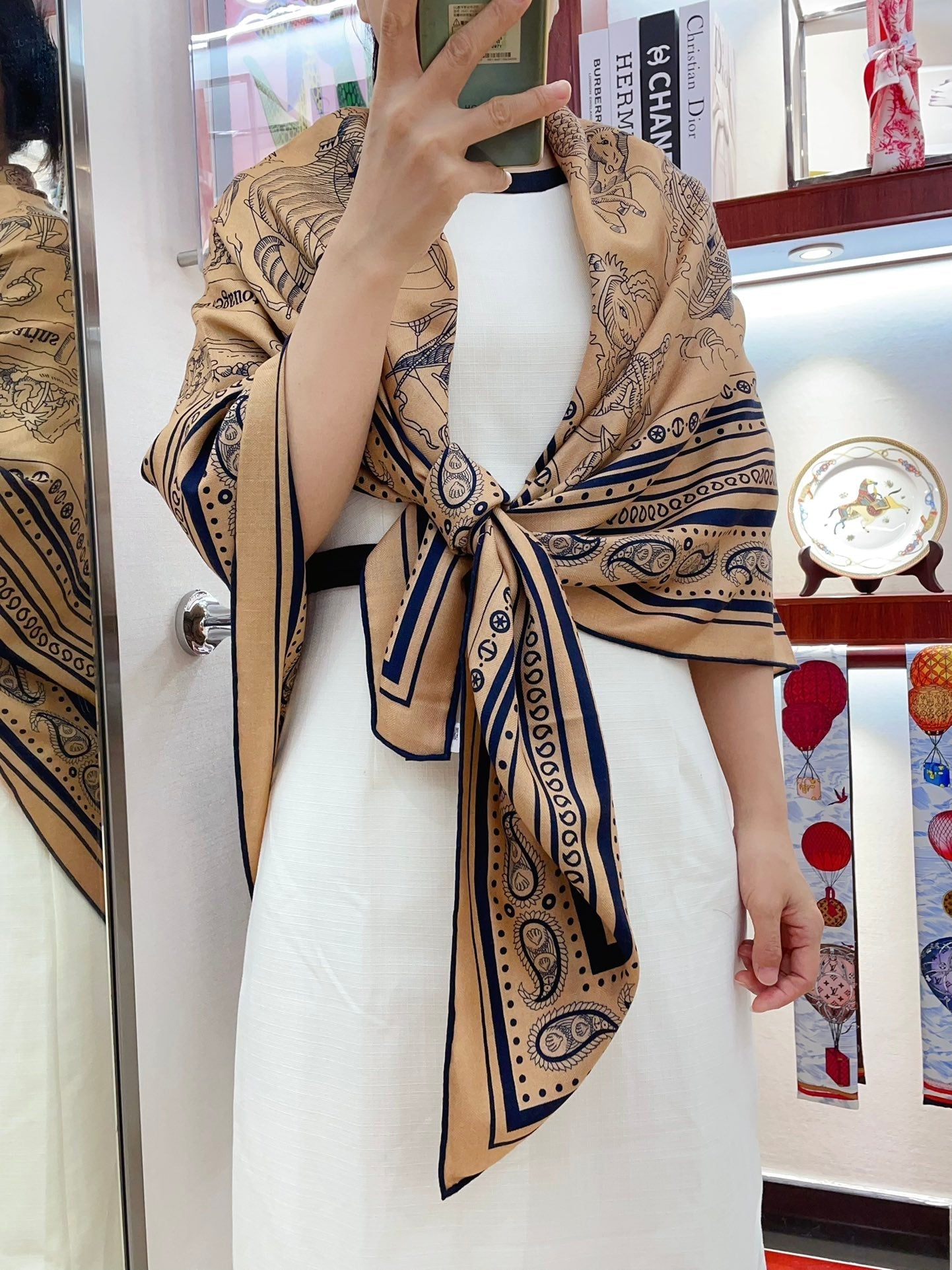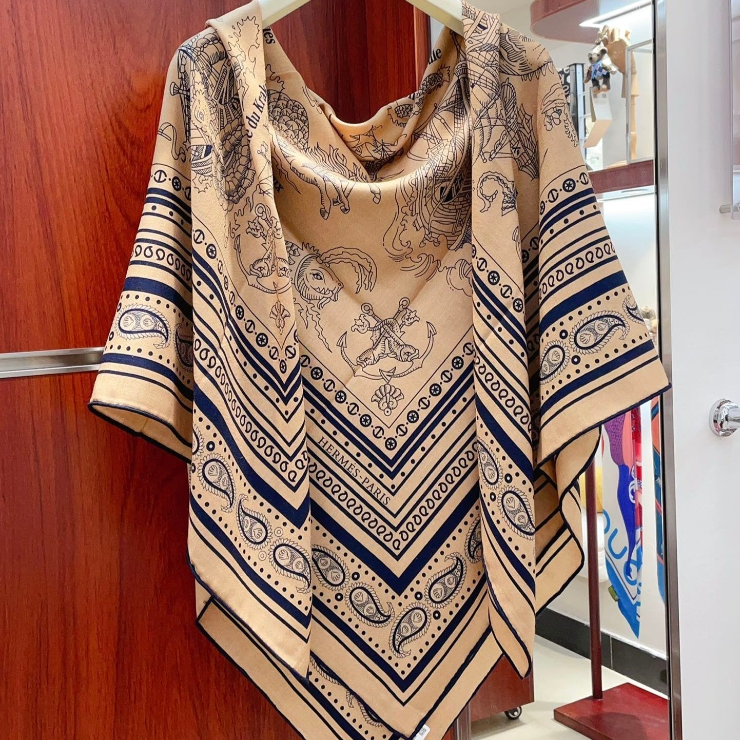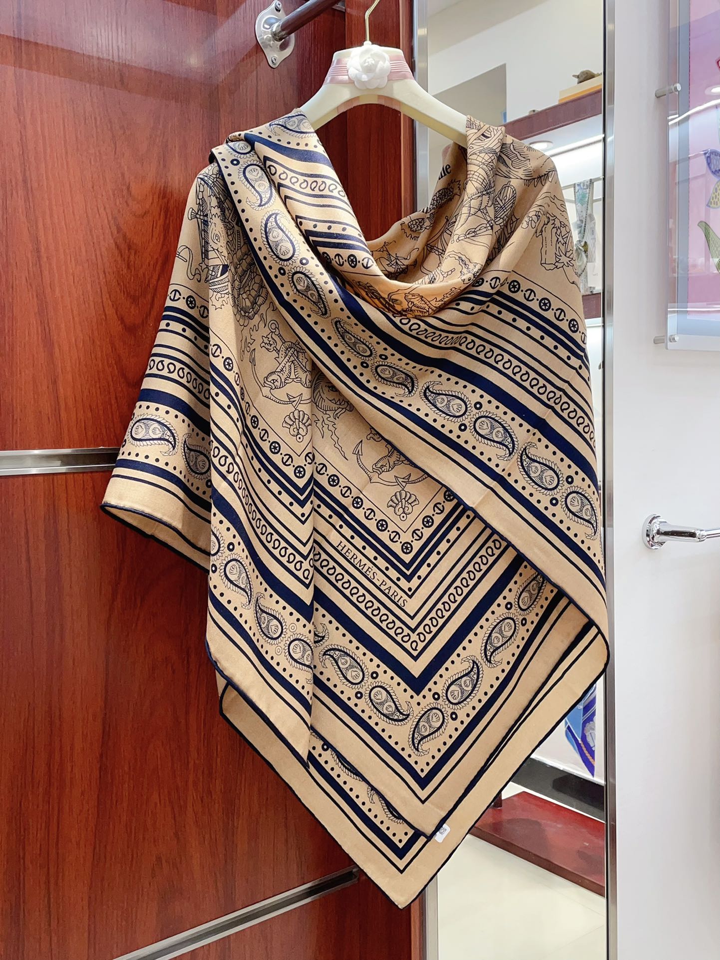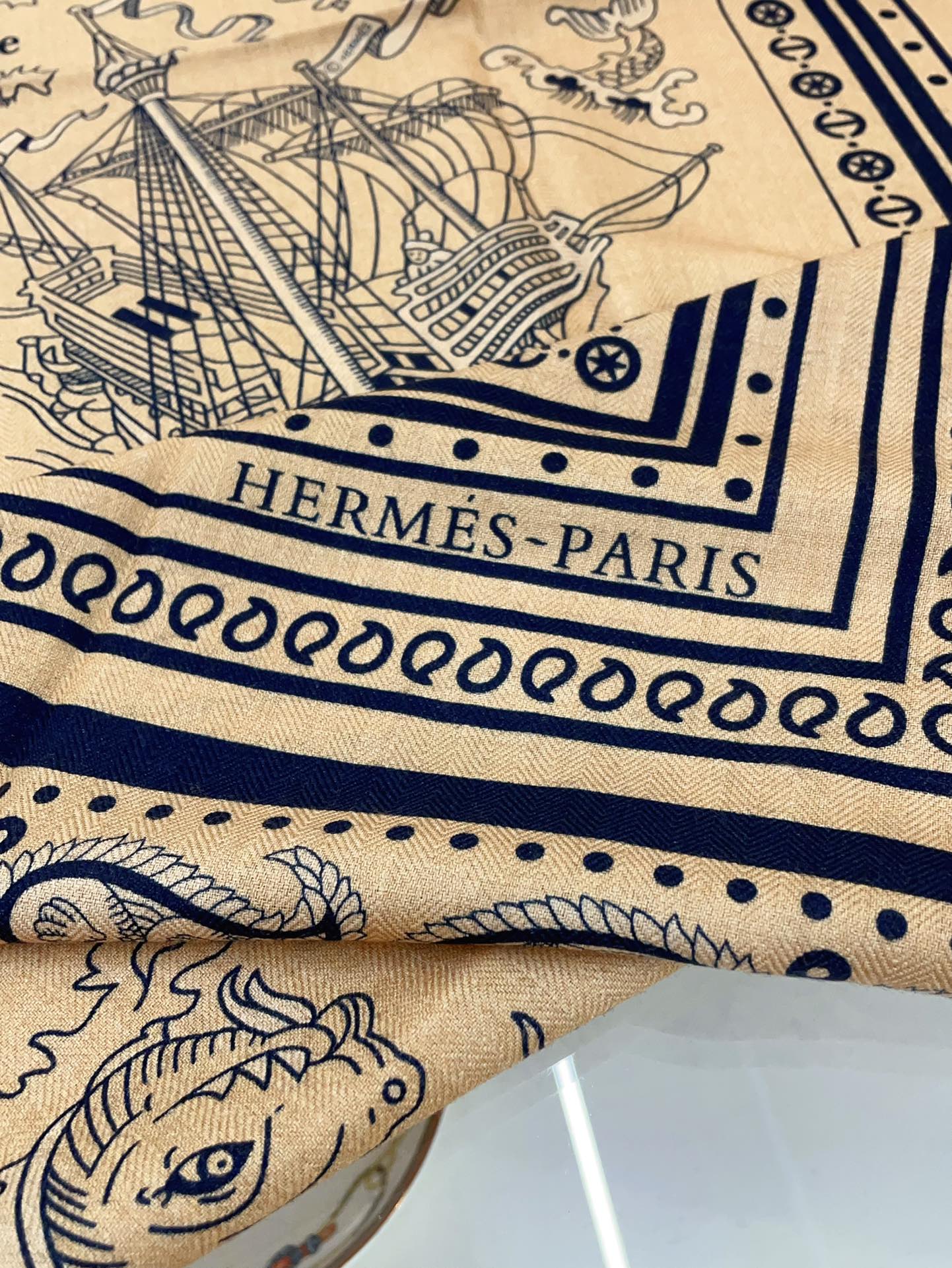Tatouages Marins Bandana Shawl 135 CM In Dark Beige Colorful Cashmere And Silk 252314