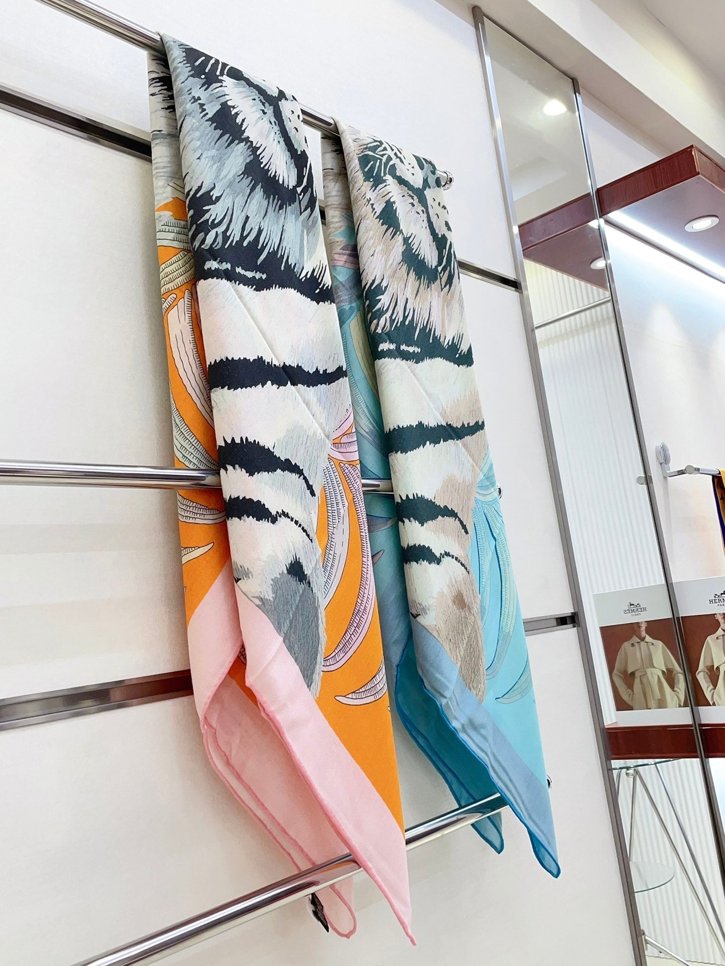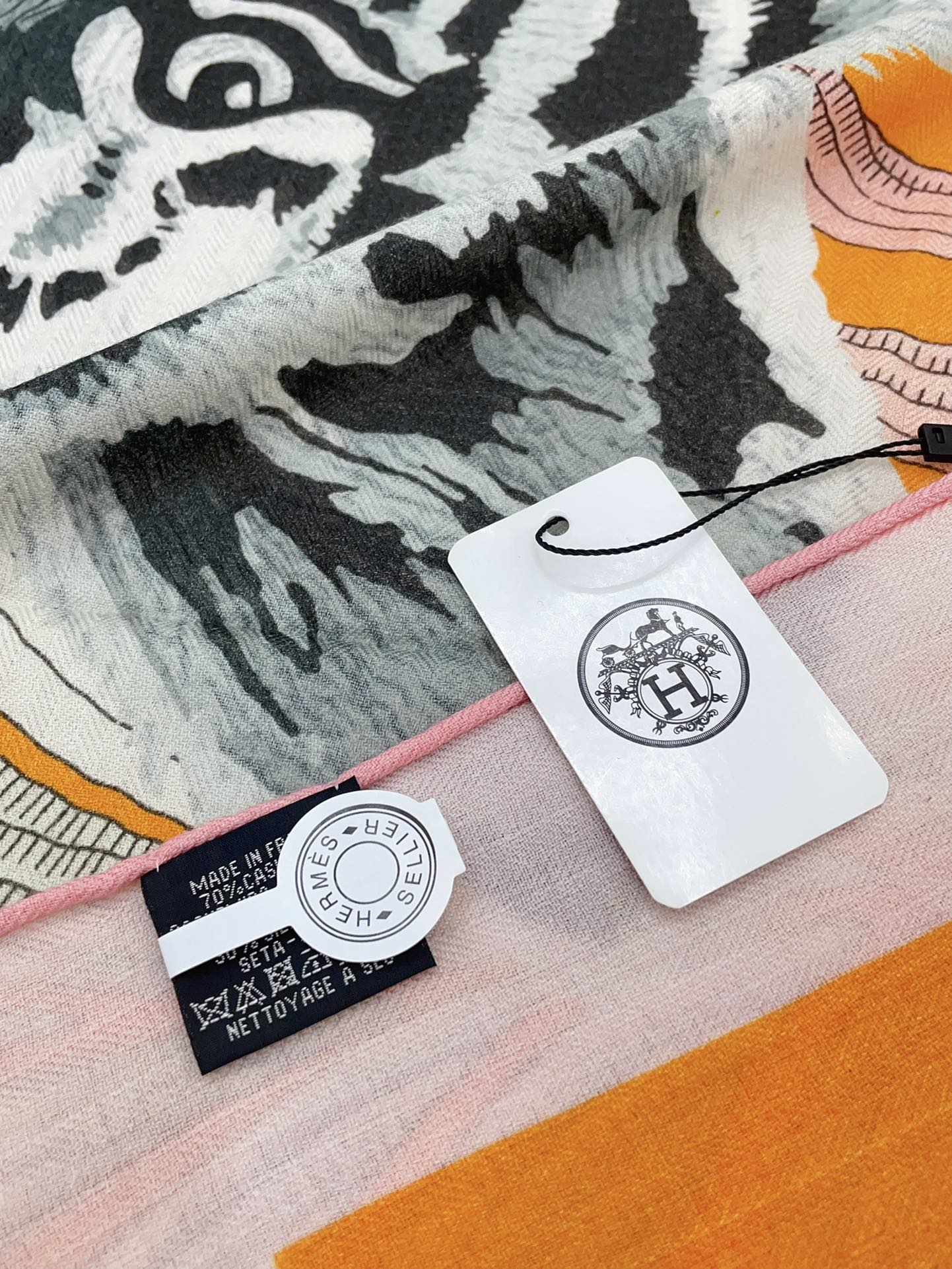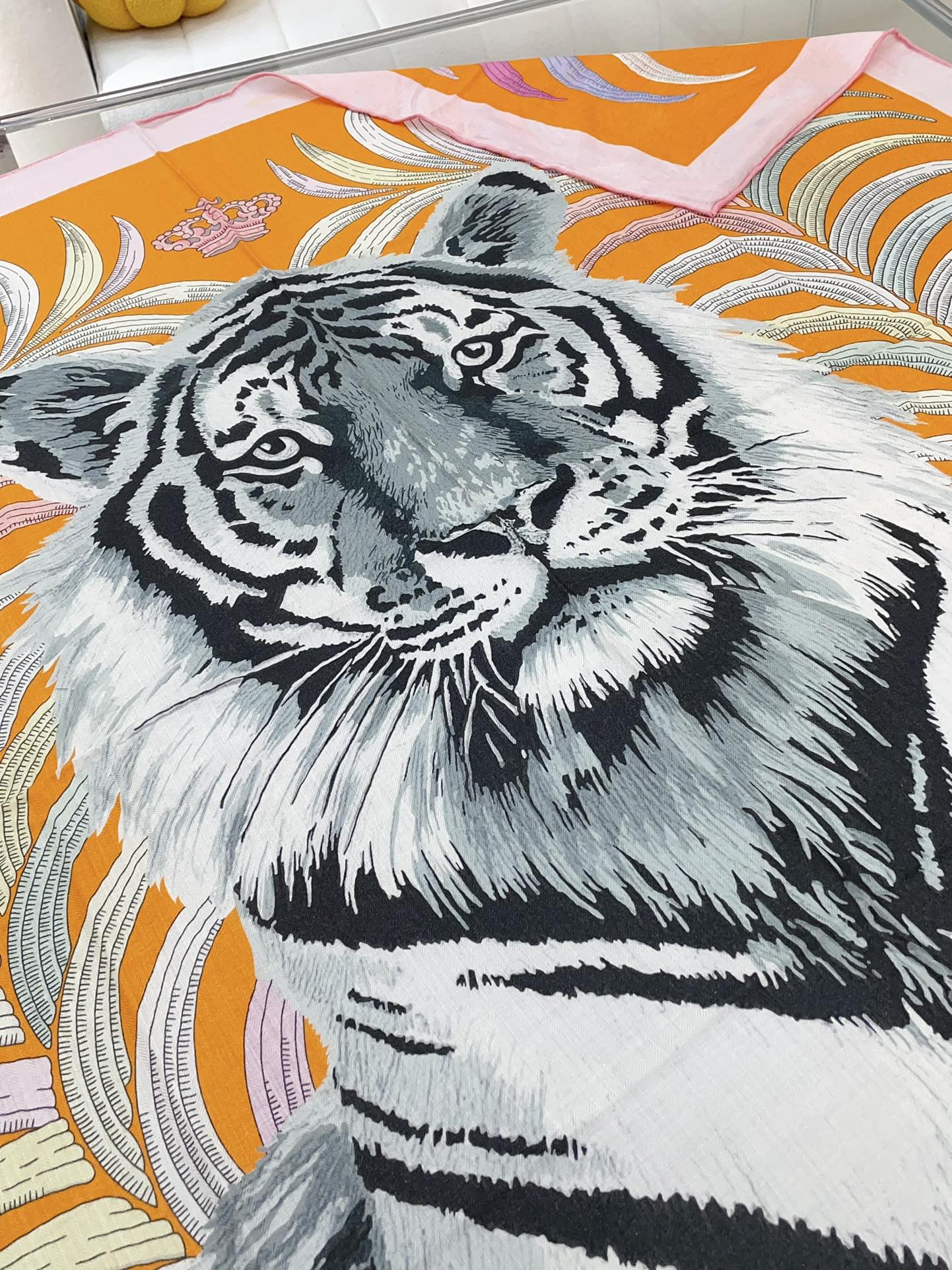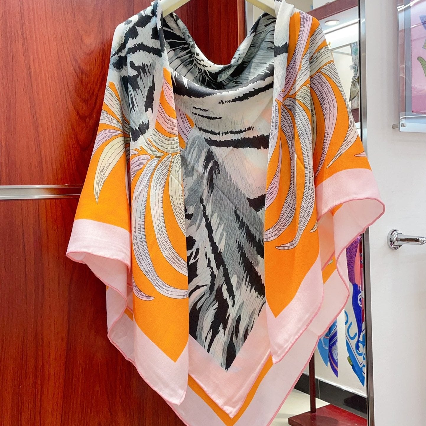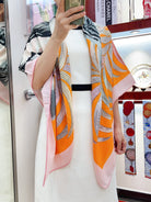 Tigre Royal Double Face Scarf 140 CM In Orange Colorful Cashmere And Silk 254646
