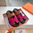 HM 25 Chypre Sandal Orange Red Suede Calfskin Silver H