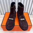 HM 25 Kelly Buckle Ankle Boots Dark Brown Silver Suede 513081