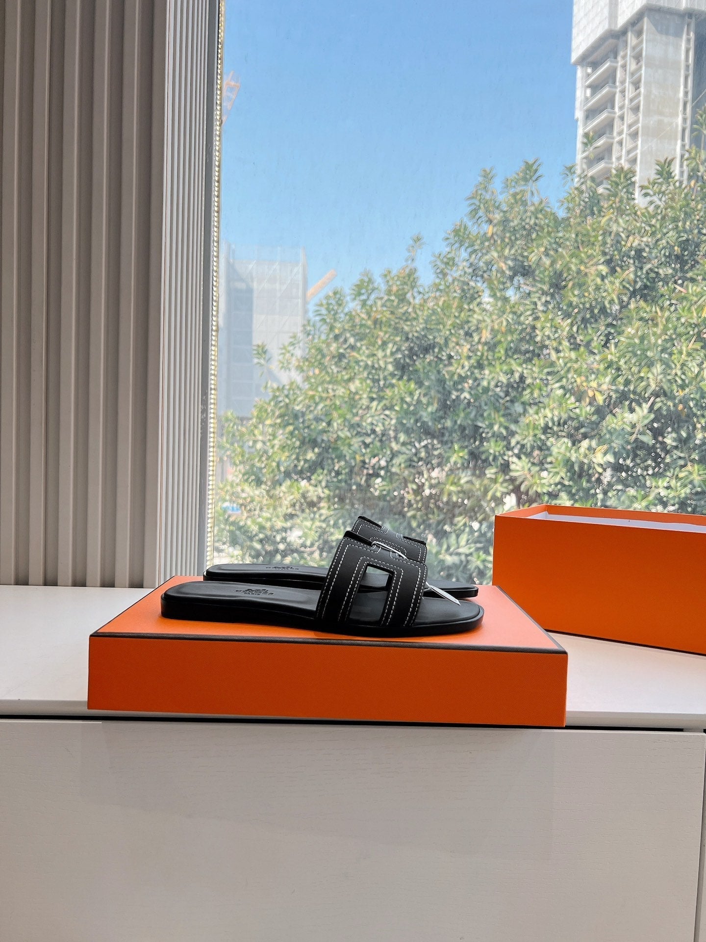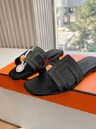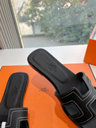 HM 25 Oran Sandal Black Calfskin White Thread Embroidery