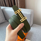 DOUBLE H REVERSIBLE BELT 32MM GOLD BUCKLE BLACK DARK GREEN LEATHER