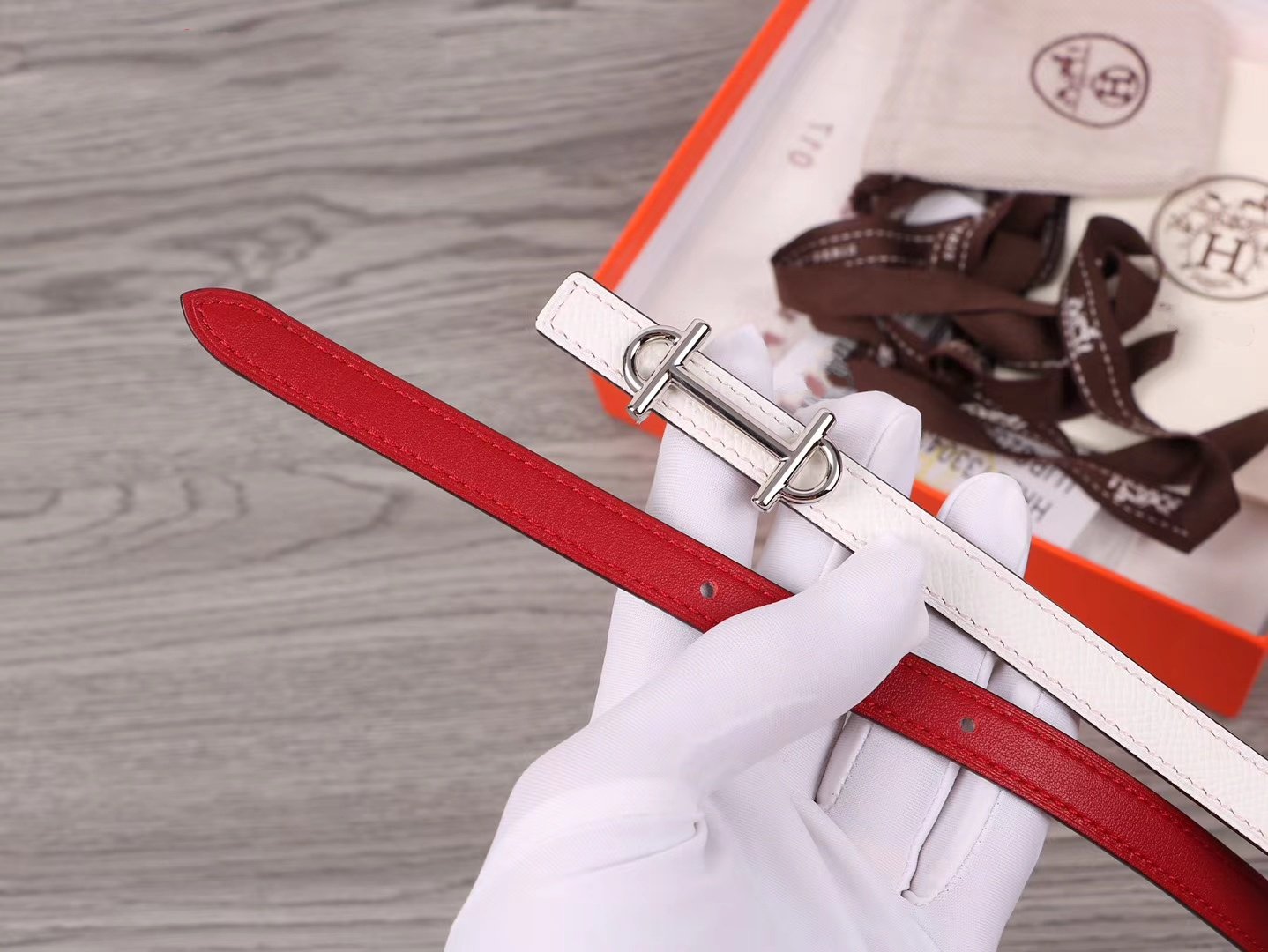 H WOMEN'S BELT 13MM SILVER BUCKLE RED WHITE LEATHER
