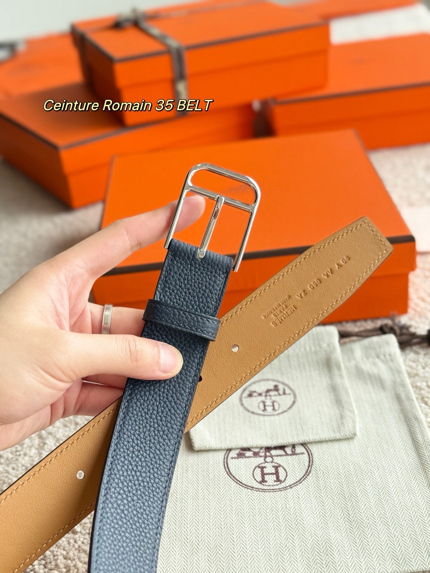 HM 35mm Romain Belt Midnight Blue Leather 188399