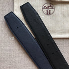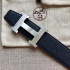 HM BELT BUCKLE & REVERSIBLE BLACK LEATHER STRAP 38MM SILVER HARDWARE
