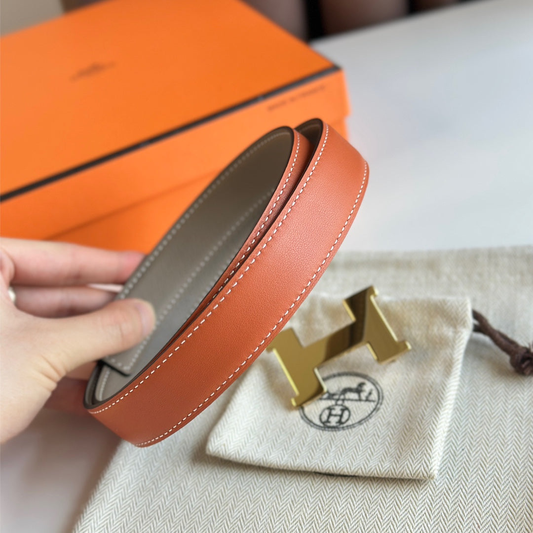 HM Gold Constance & Reverible Belt Brown Etoupe Leather 125371