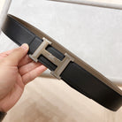 HM H D'ANCRE BELT BUCKLE & REVERSIBLE COFFEE BROWN LEATHER STRAP 38 MM SILVER HARDWARE