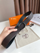 HM LUCK BELT BUCKLE & REVERSIBLE CHOCOLATE BROWN AND BLACK LEATHER STRAP 38MM