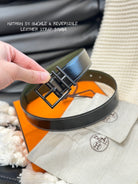 HM NATHAN REVERSIBLE BELT 32MM OLIVE GREEN AND BLACK LEATHER BLACK HARDWARE