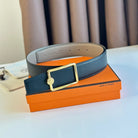 TUBE H BELT BUCKLE & REVERSIBLE KHAKI BROWN AND BLACK LEATHER STRAP 38MM GOLD HARDWARE
