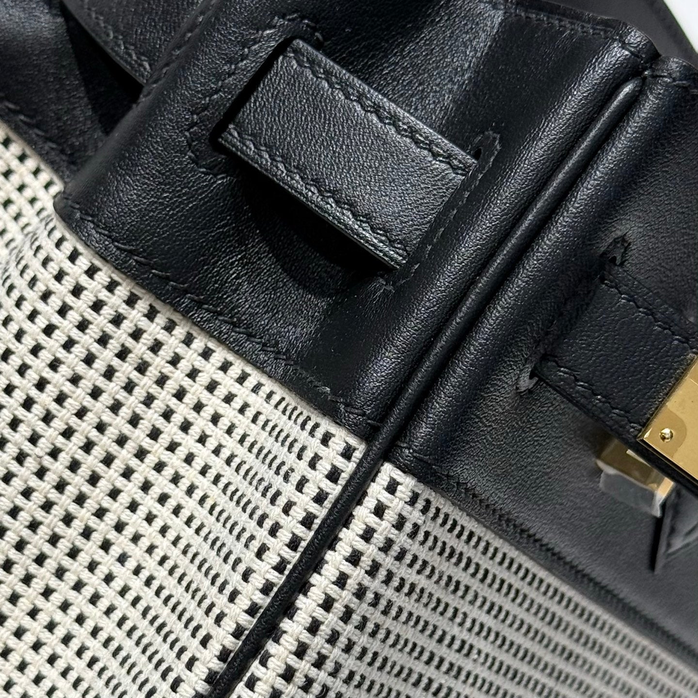 HM Birkin 30cm Black Swift Leather Dark Grey Canvas Gold Hardware