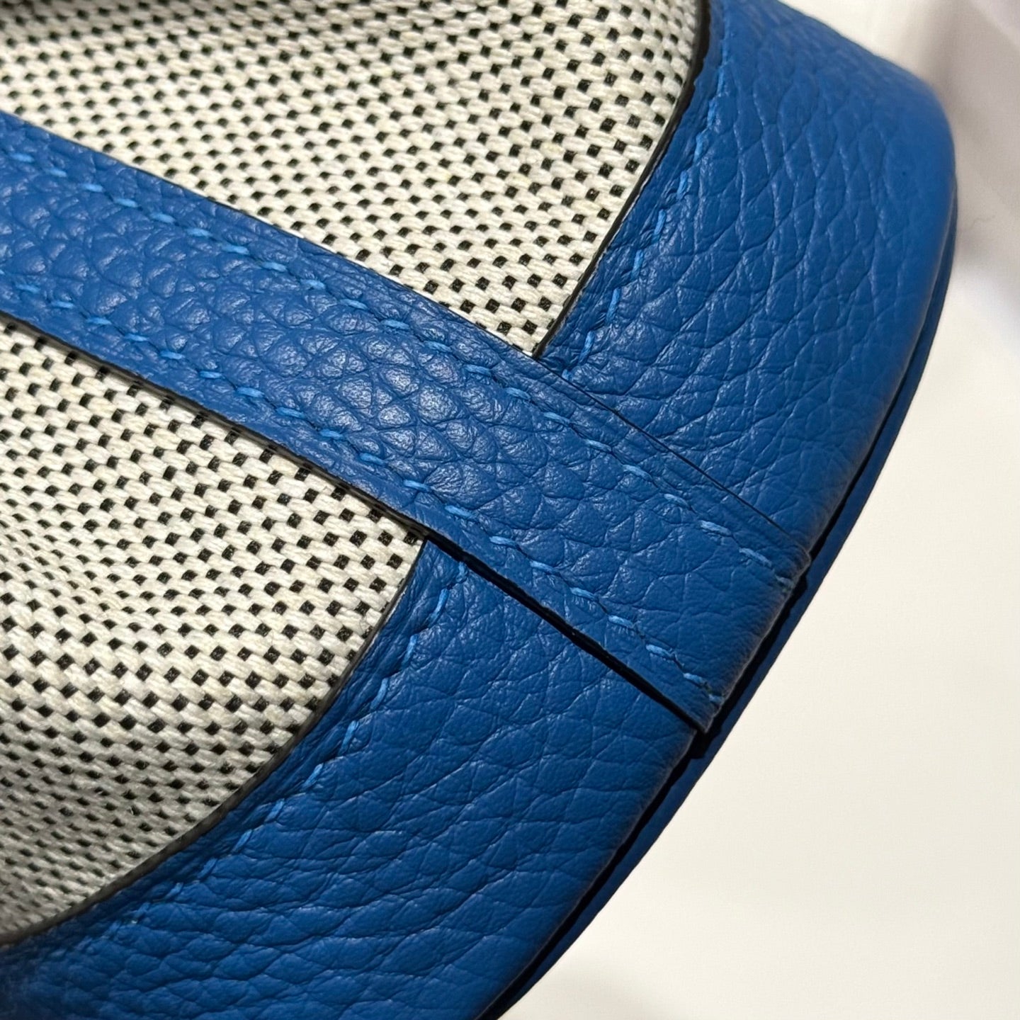 HM Garden Party Mini 23cm Bag Blue Togo Cream Canvas