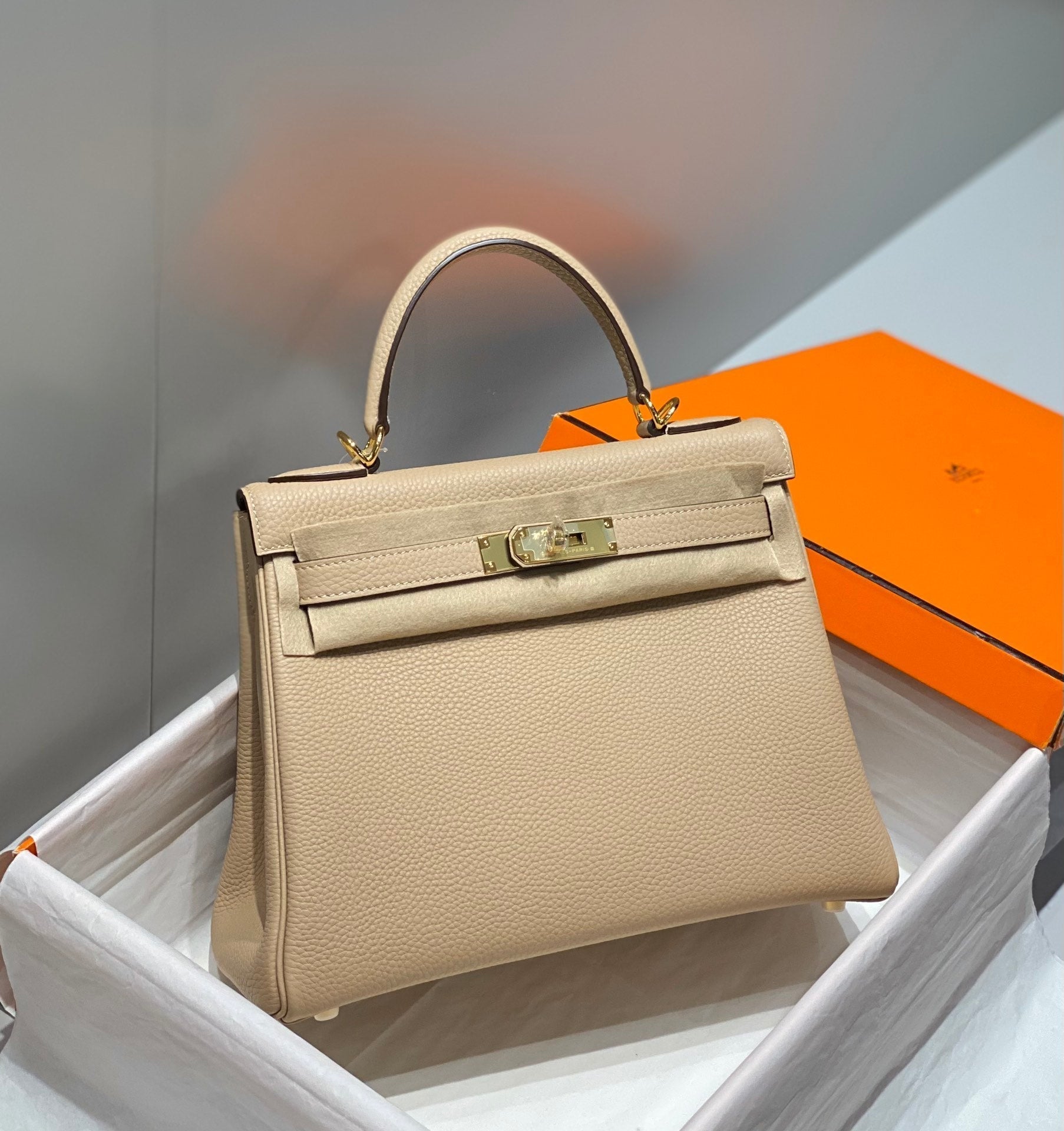 HM KELLY 28CM LIGHT BEIGE TOGO GOLD HARDWARE