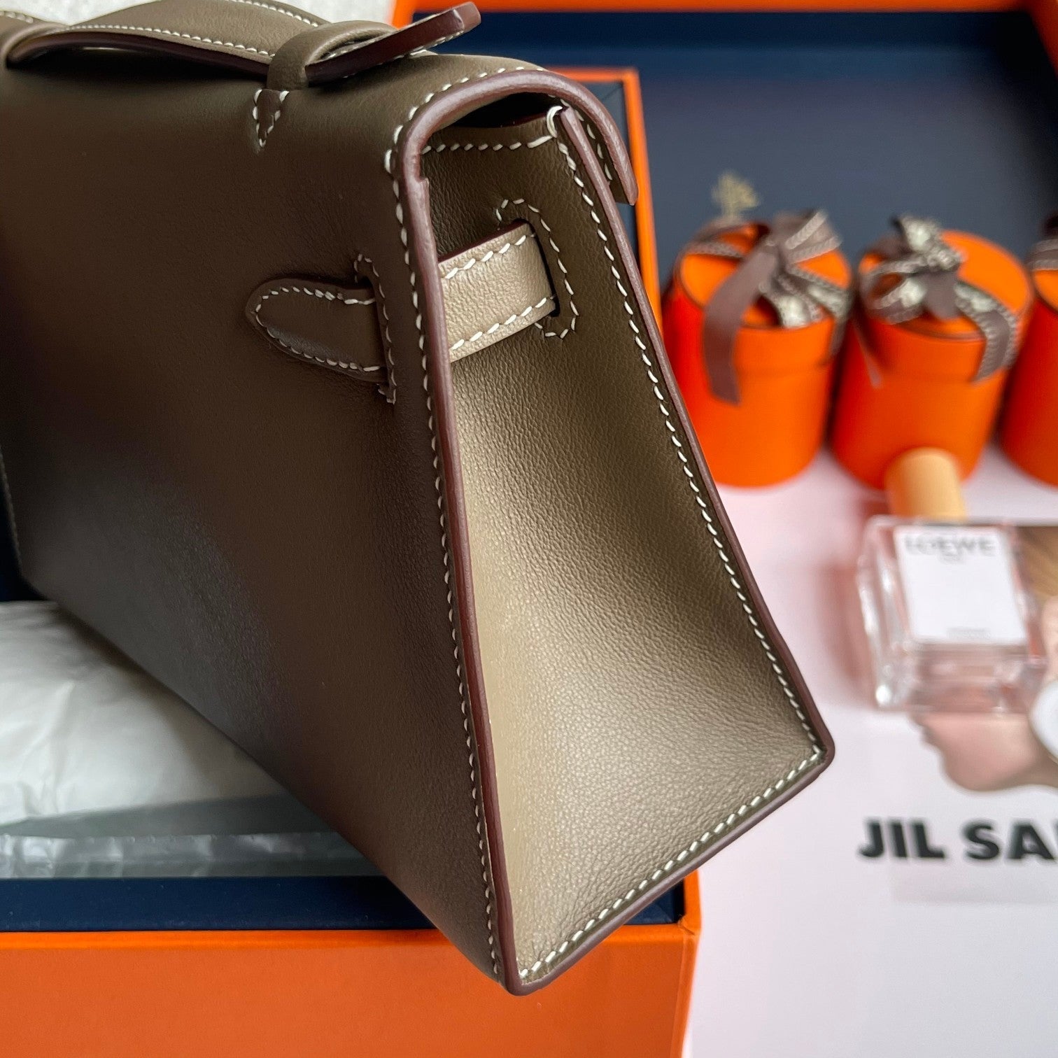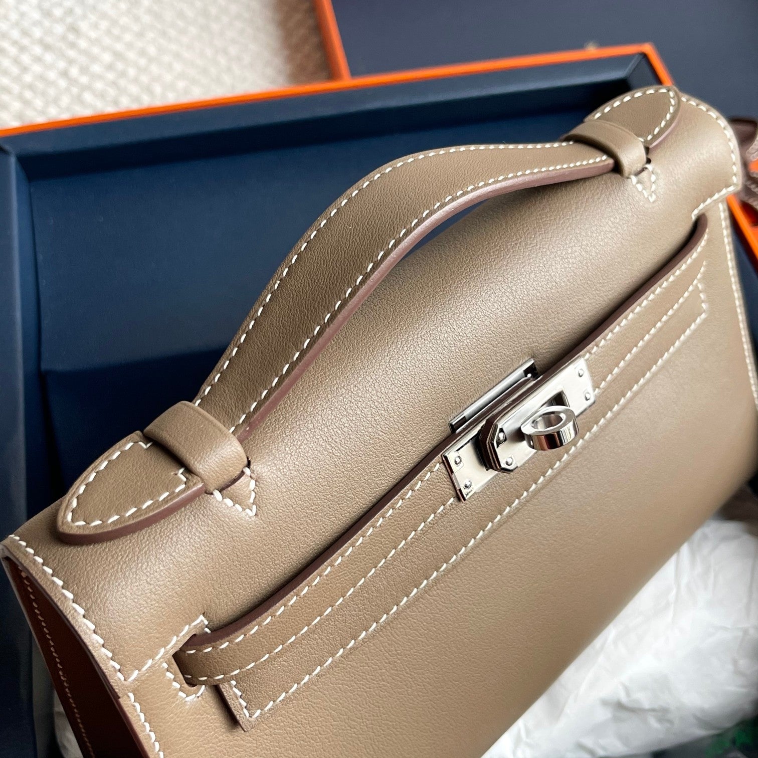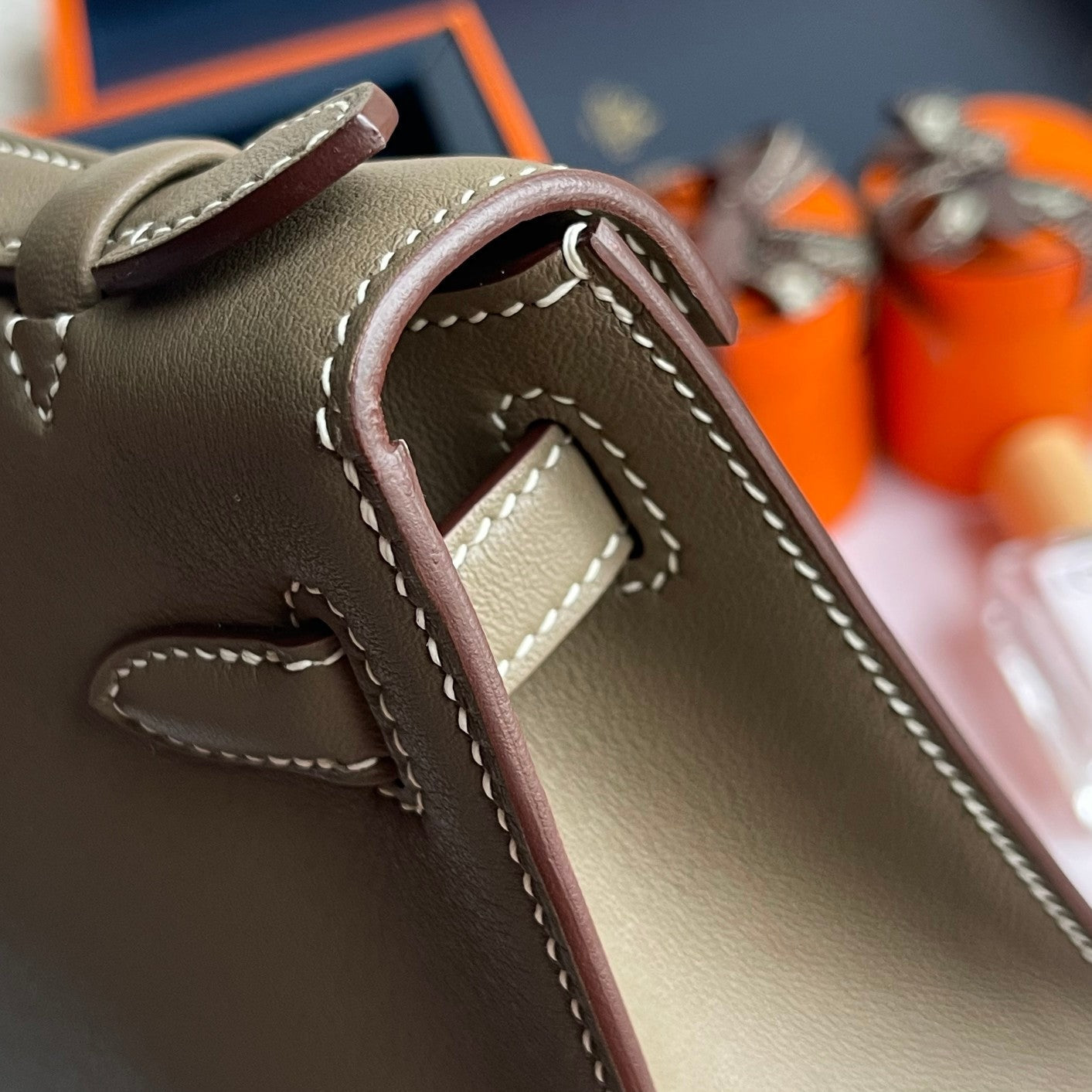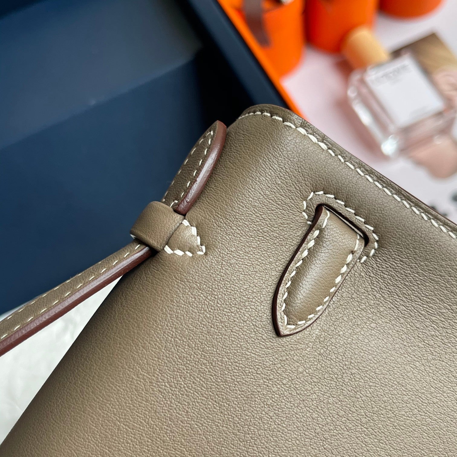 HM Kelly Pochette 22cm Gris Elephant Swift Silver Hardware
