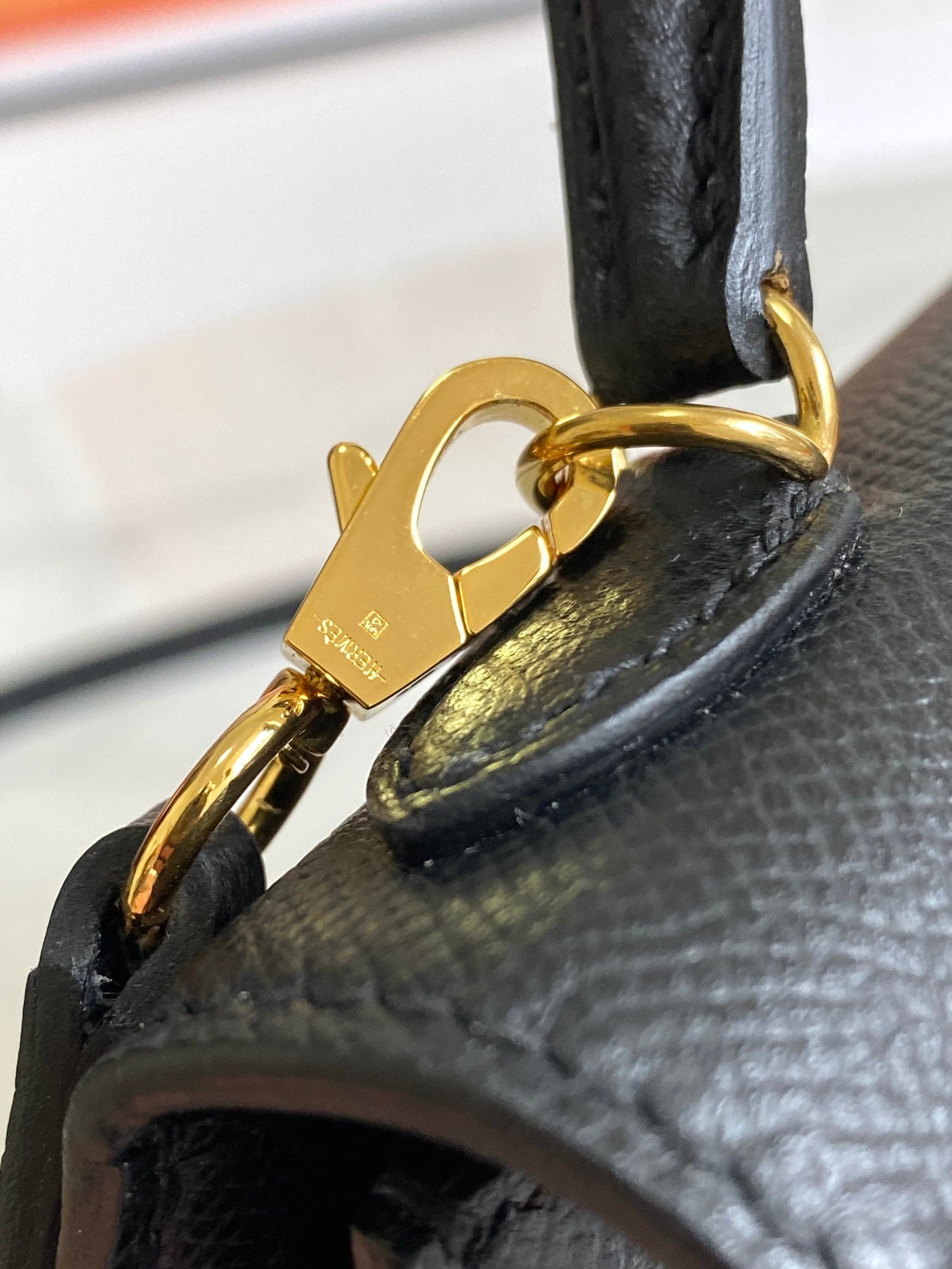 HM Mini Kelly 19cm Black Epsom Gold Hardware