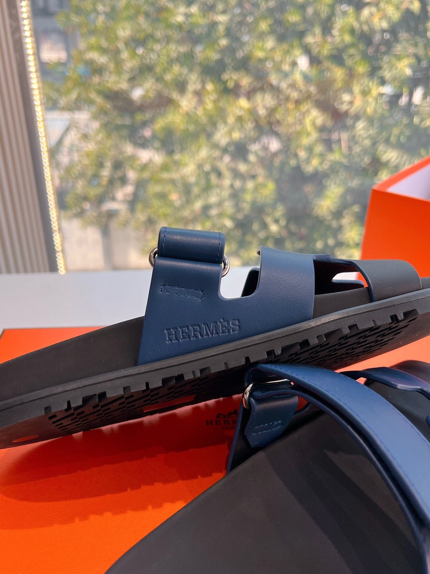 HM Chypre Sandal Navy Blue mix Black Calfskin 202817