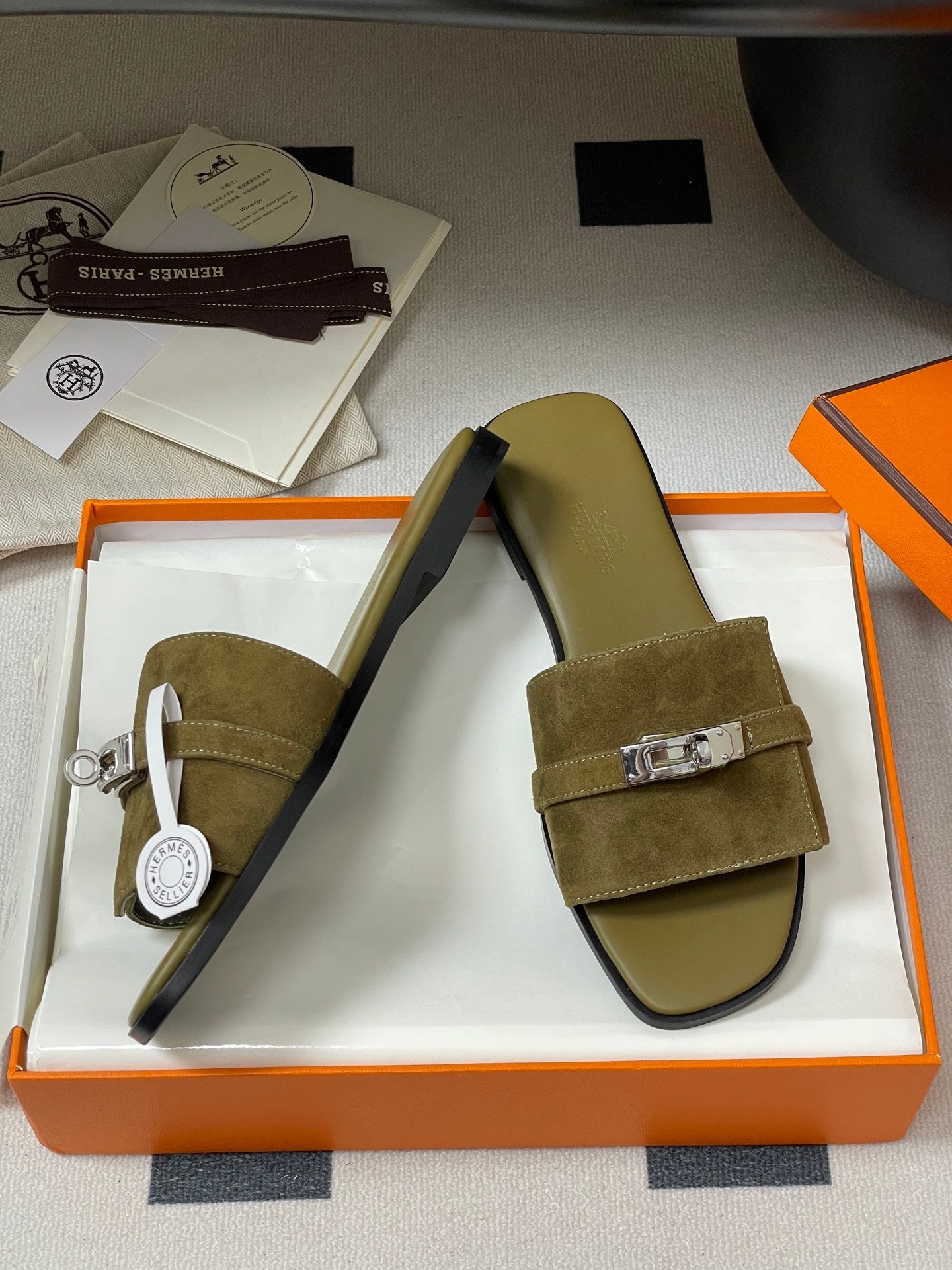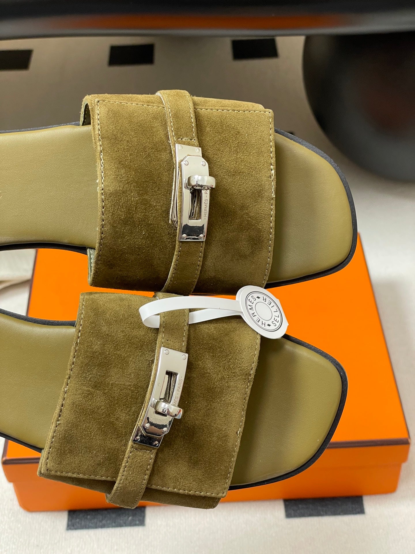 HM Giulia Sandals Moss Brown Calfskin 314024
