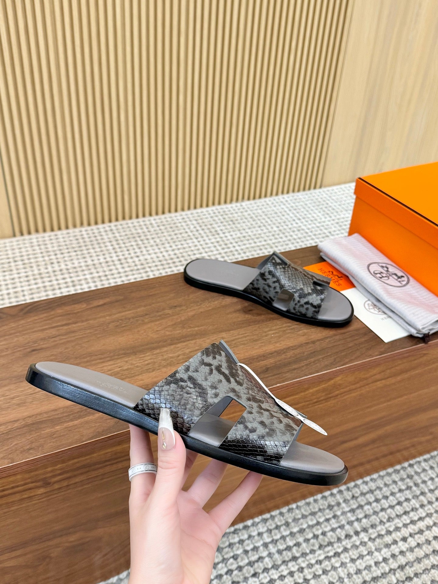 HM Izmir Sandal Gray Rose Leather 294343