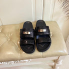 HM Jackson Sandal Black Embossed Pattern Cowhide 958028