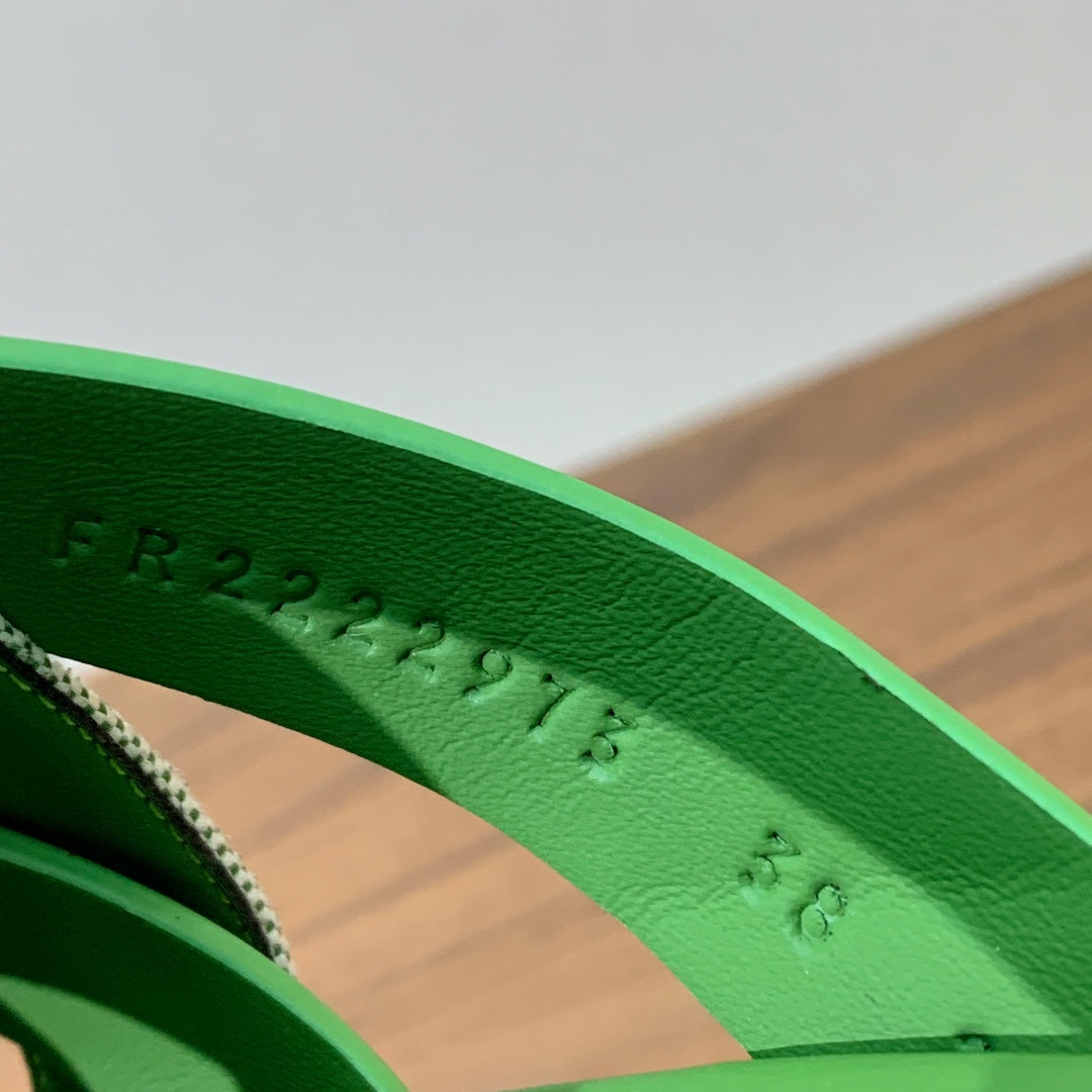 HM Kazimir Sandal Green Gray Farbic Calfskin 293988