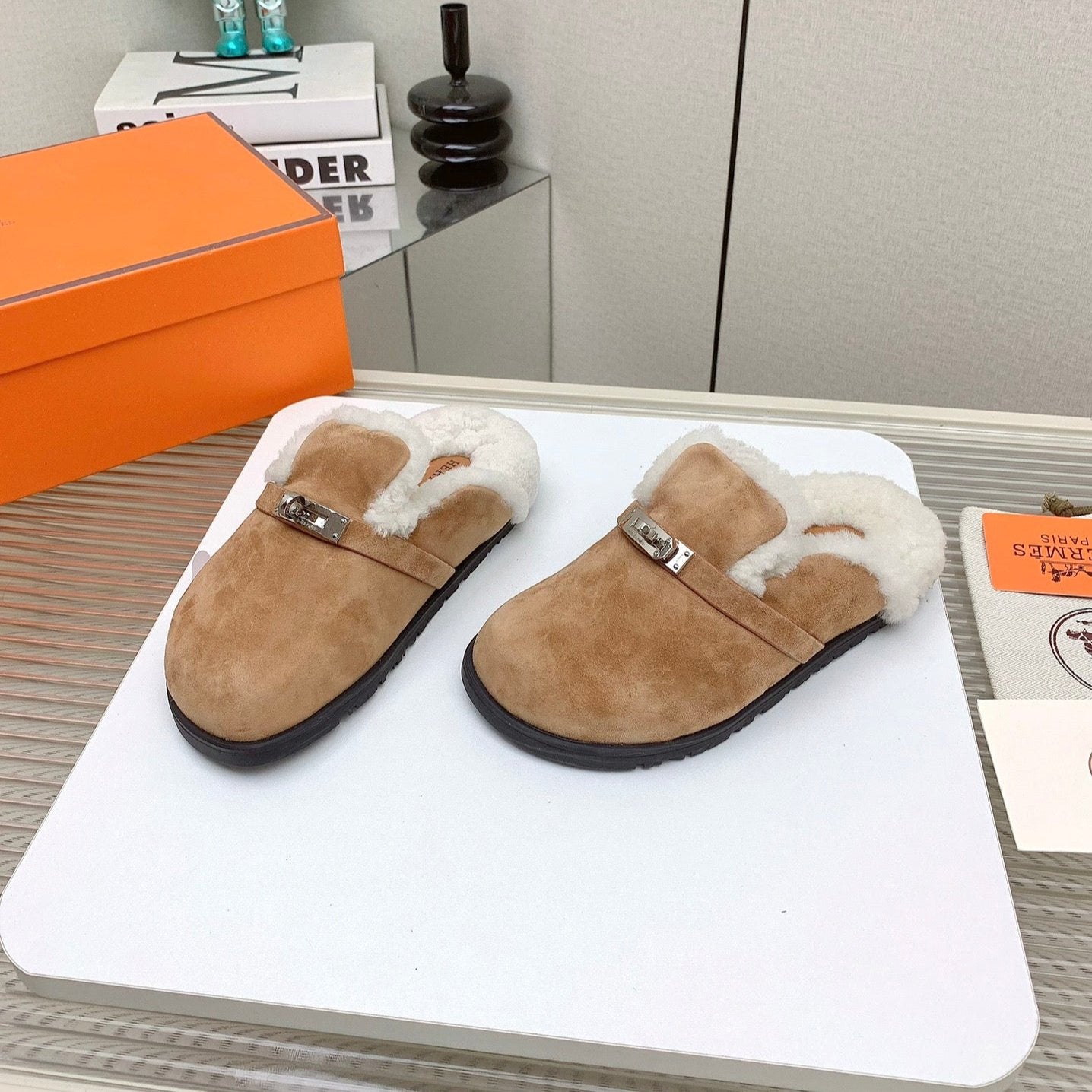 HM Mule 30mm In Light Brown With Fleece And Suede Lining 971394