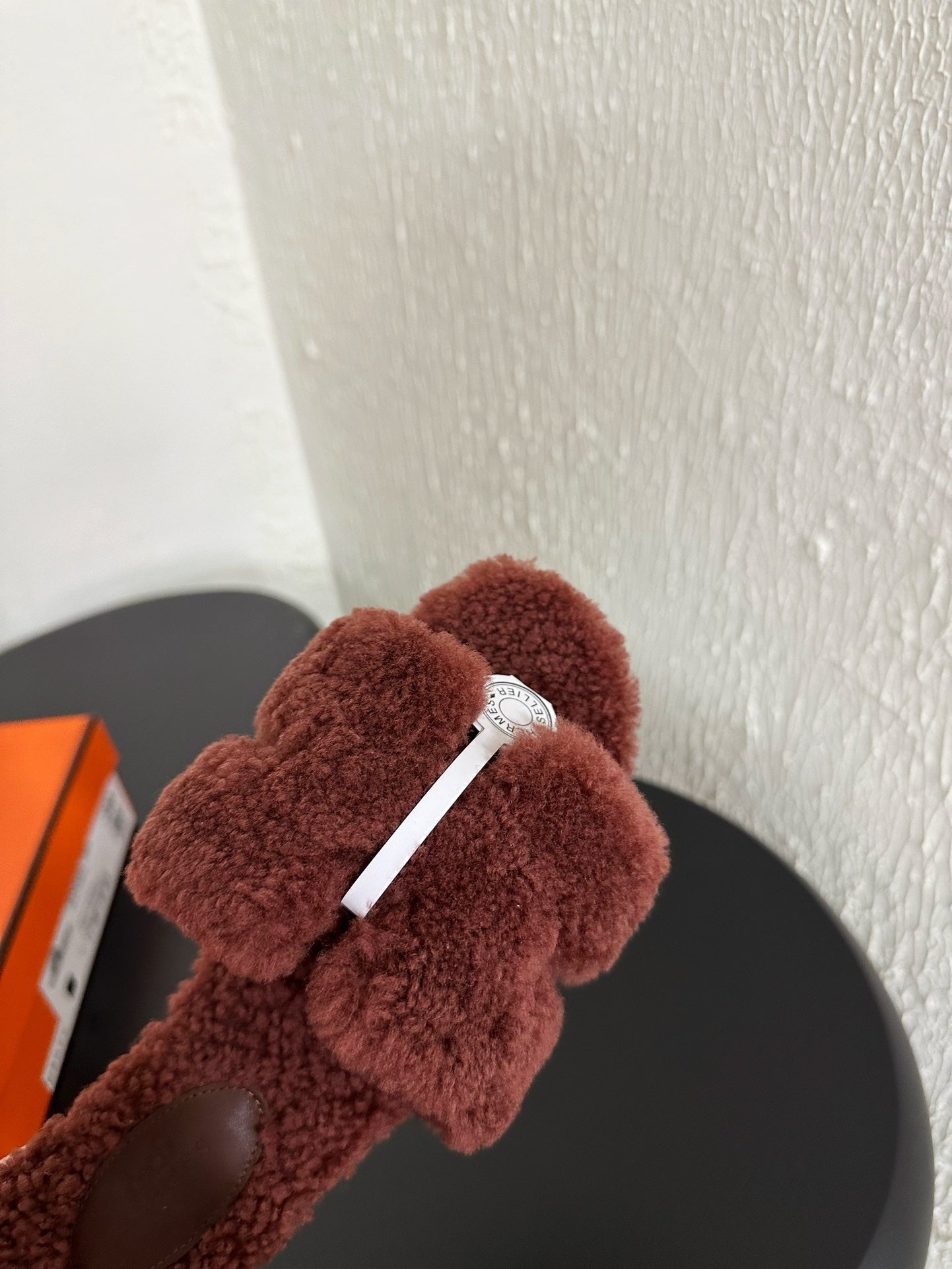 HM Oran Sandal Dark Brown Red Wool Fleece 961014