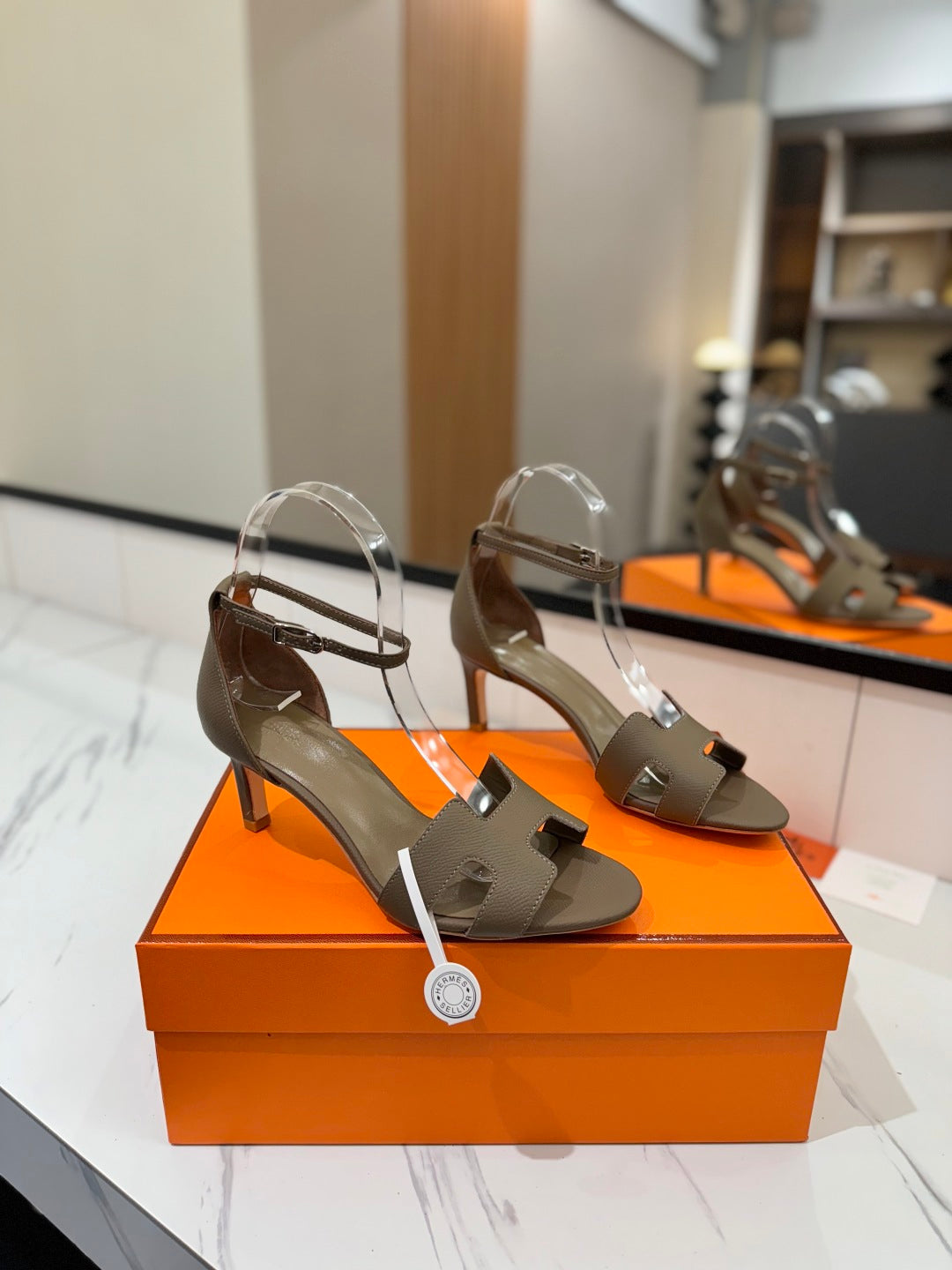 HM Joy 65mm Heeled Sandals Etoupe Cowhide 294909