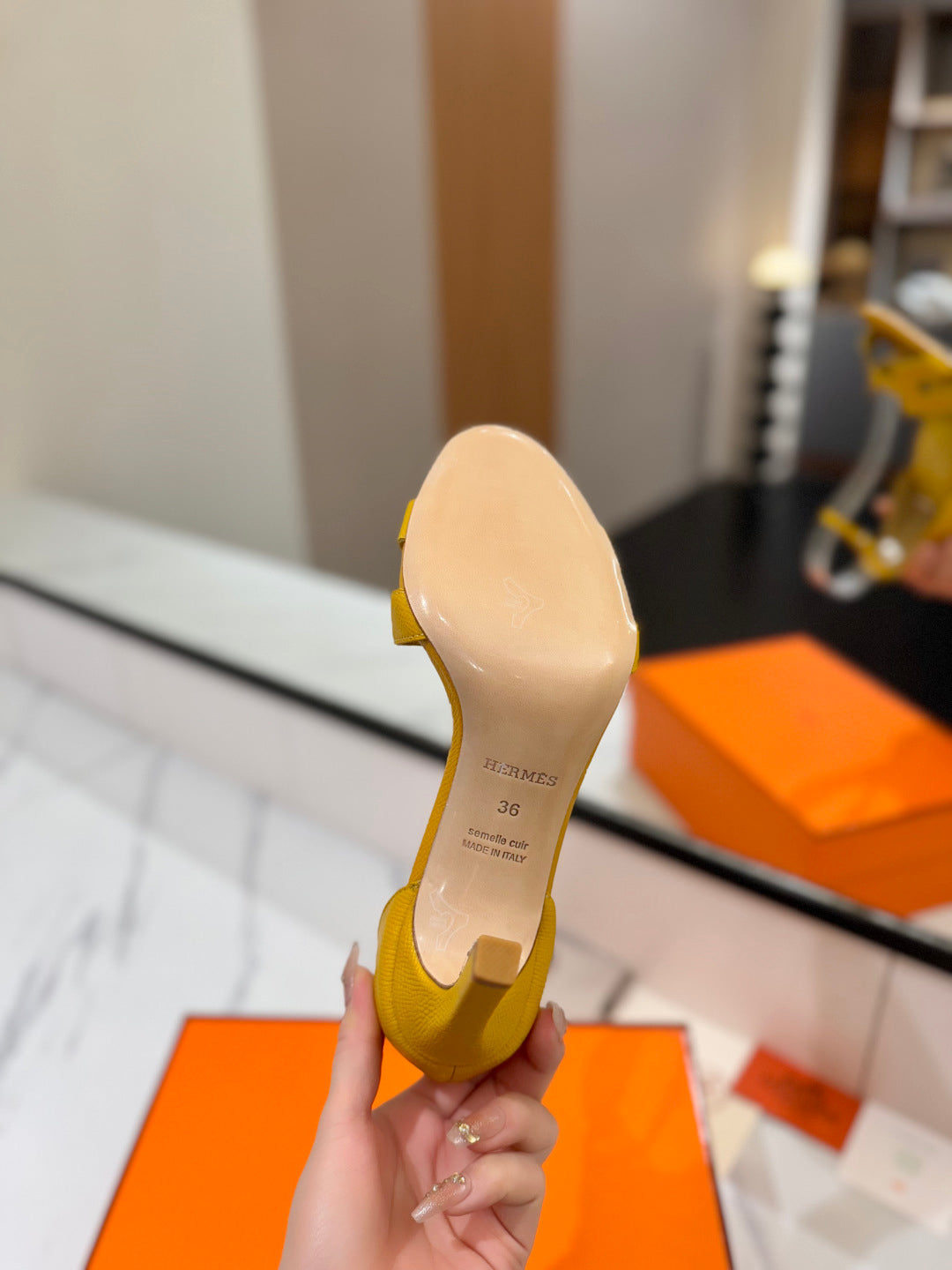 HM Joy Heeled Sandals Yellow Cowhide 294899