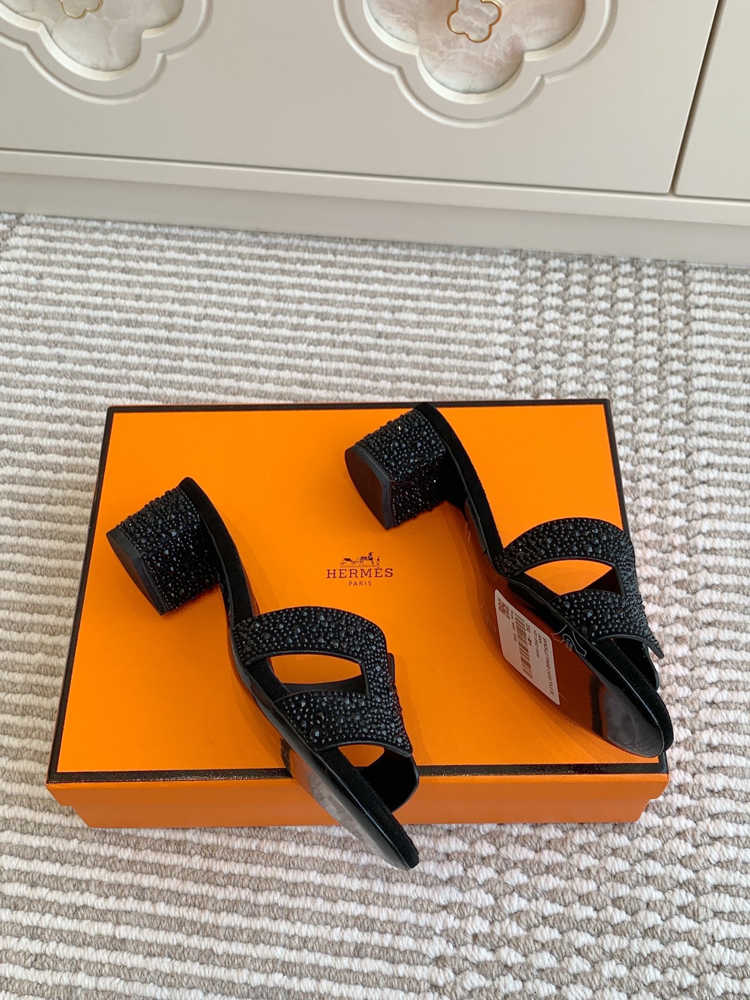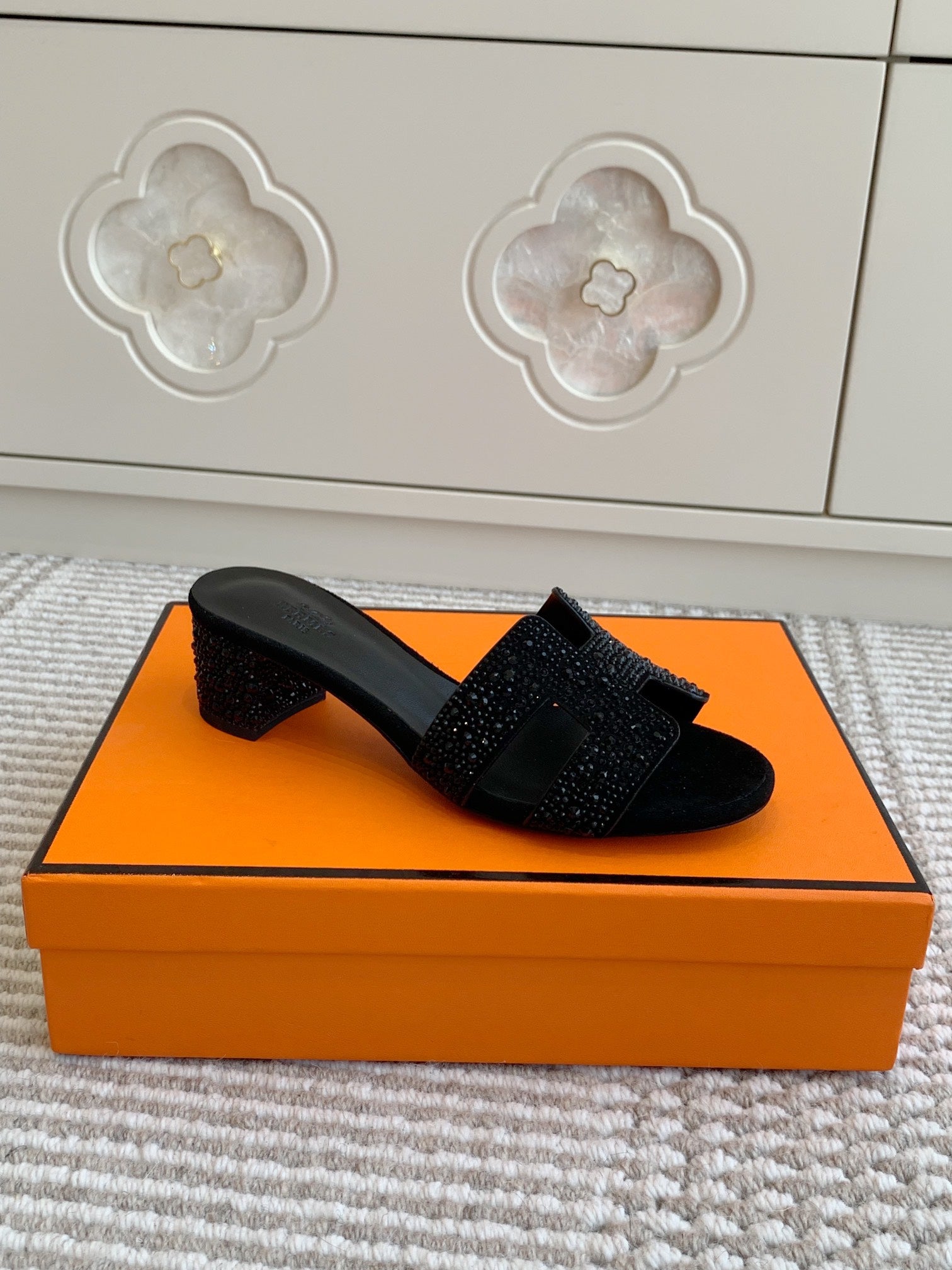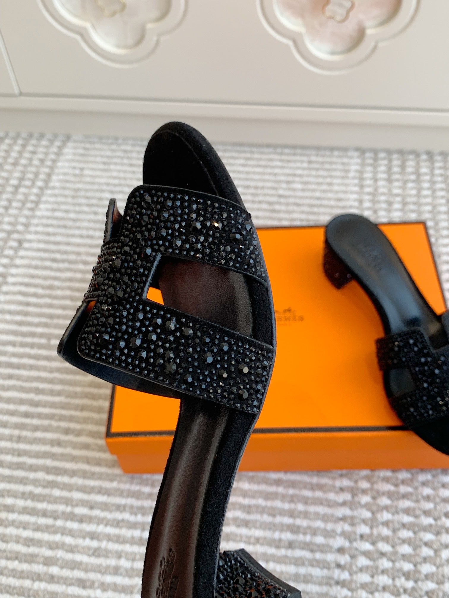 HM Oasis Sandal 50mm Black Suede Goatskin 291392