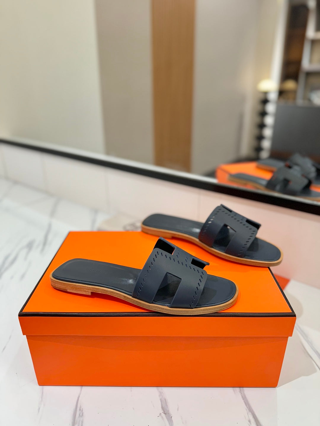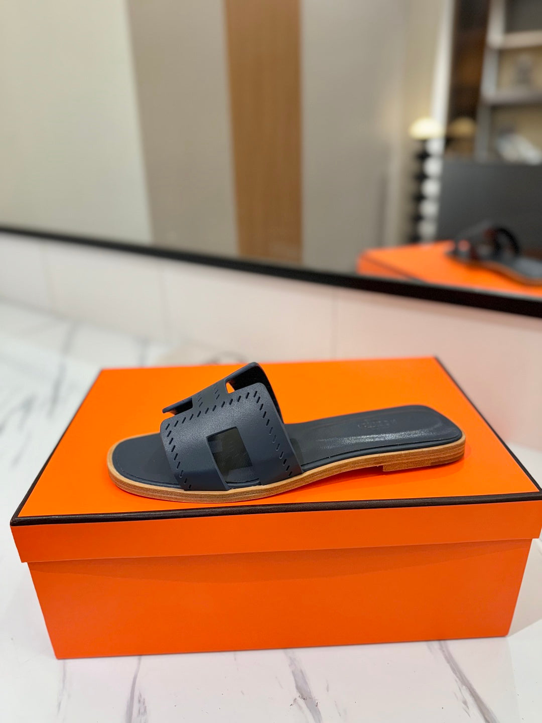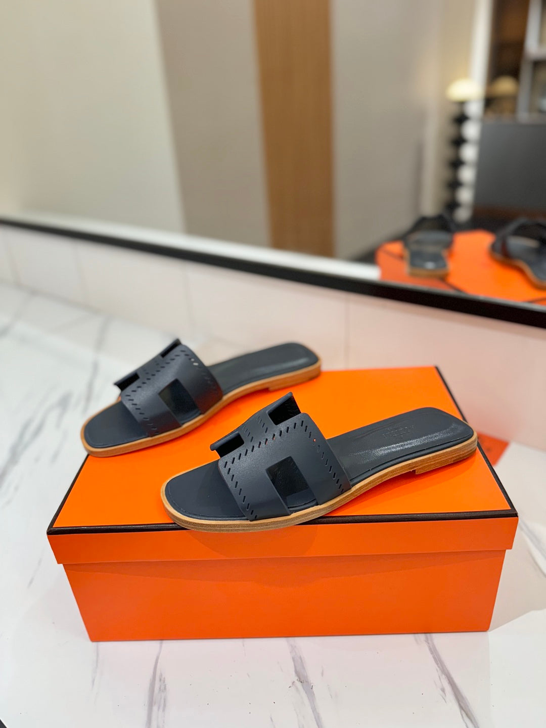 HM Oran Sandal Black Blue Perforate Cowhide 294870