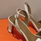 SLINGBACK SANDAL ETERNITE 75 WHITE MIX LIGHT BROWN LAMBSKIN