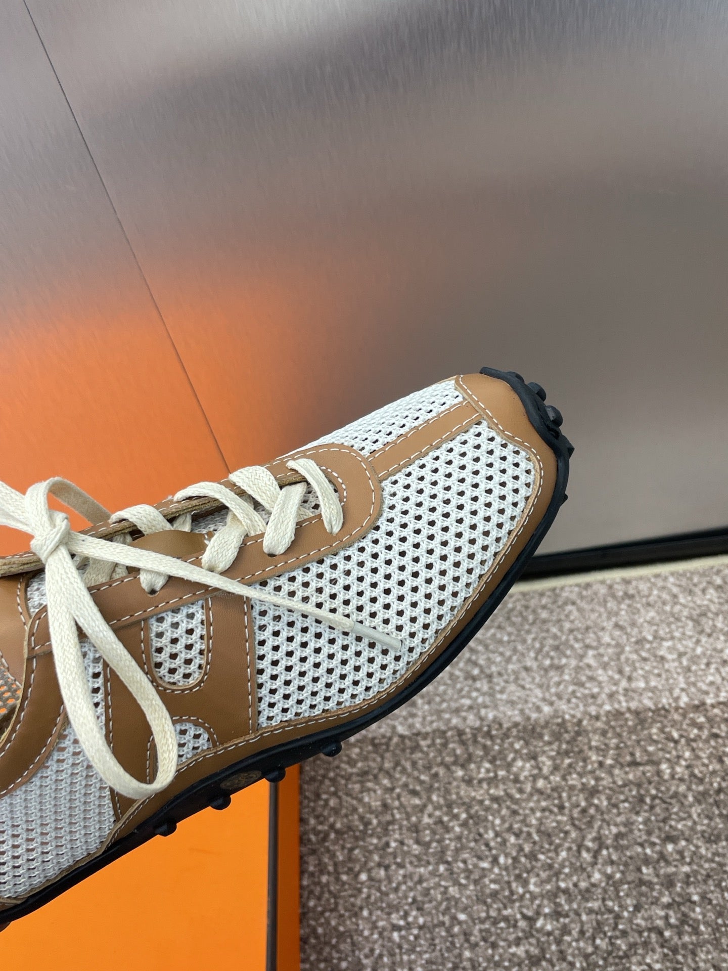 HM 25C Kiga sneaker Brown mix White Crochet knit with Calfskin 208291