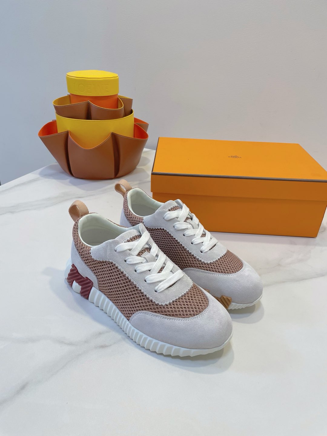 HM Bouncing sneaker Beige Gray mix Velvet Rose Fabric with Suede 212283