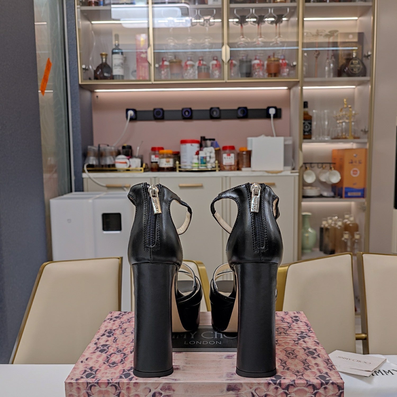 Jimmy 25 Platform Sandal Heels Black Nappa Cowhide 240009