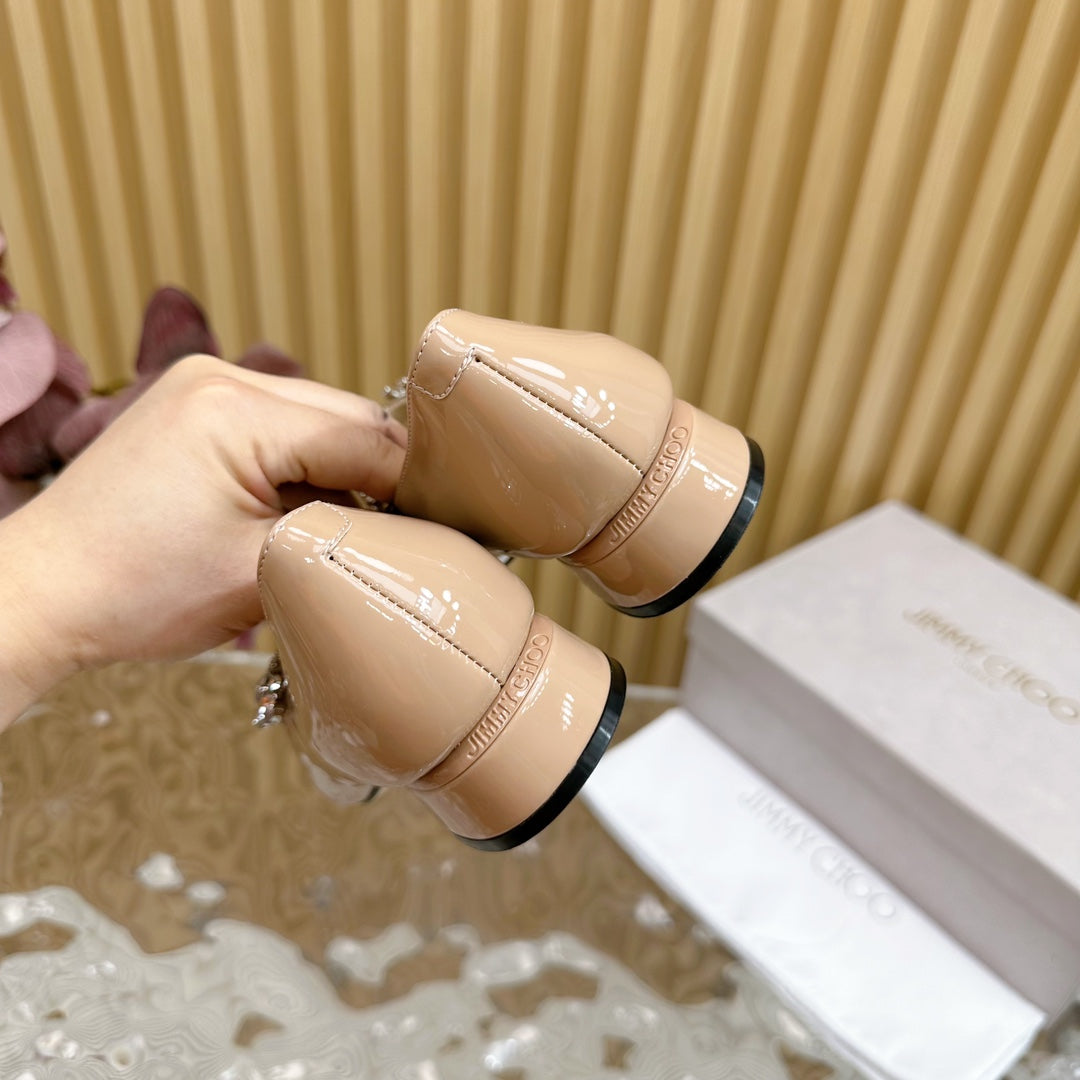 Jimmy Crystal-Strap Ballerina Shoes In Dark Beige Glossy Cowhide 641046