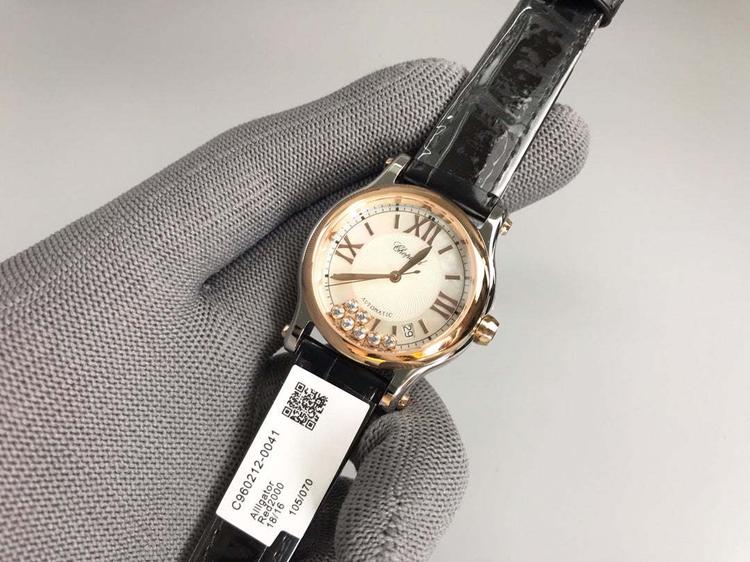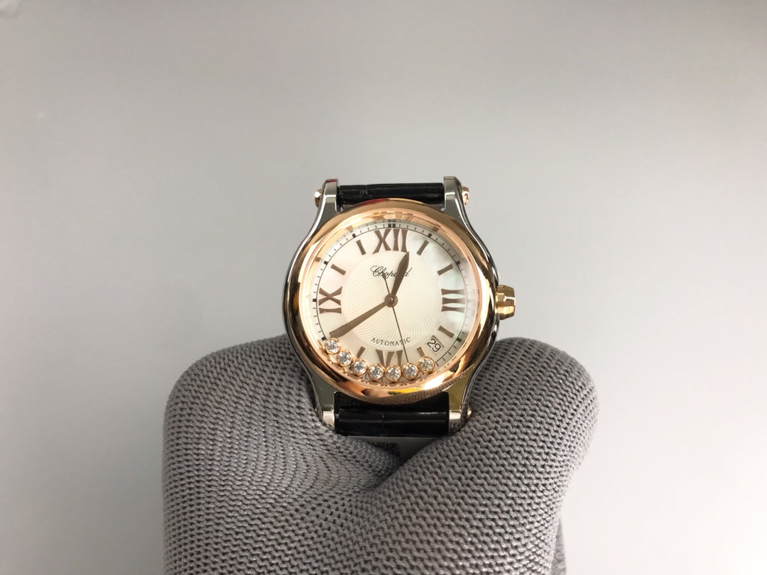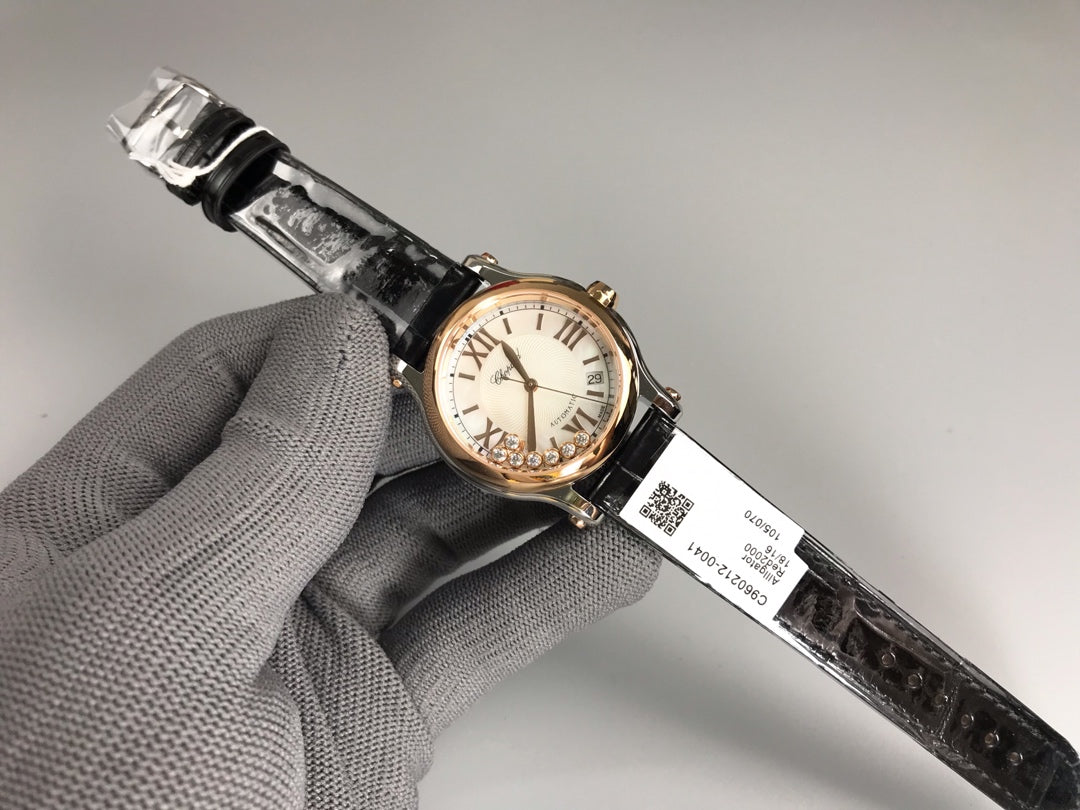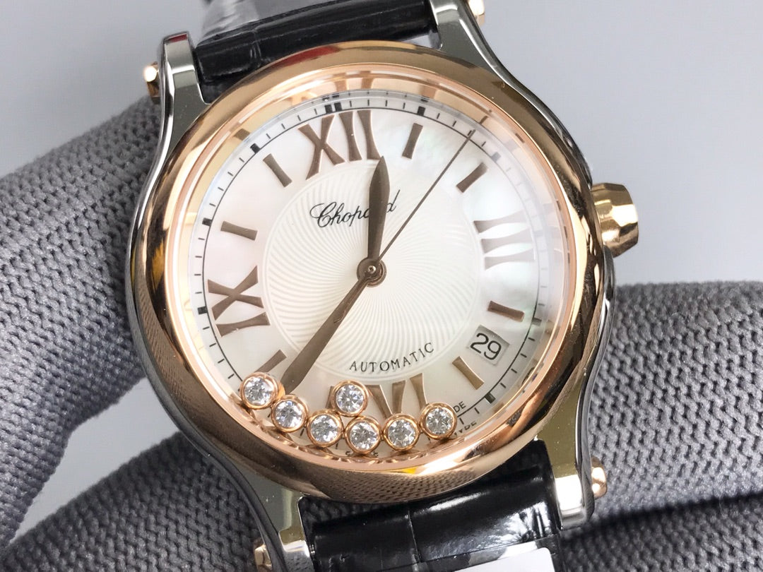 Happy Diamond Pink 36mm Pink Gold White Dial