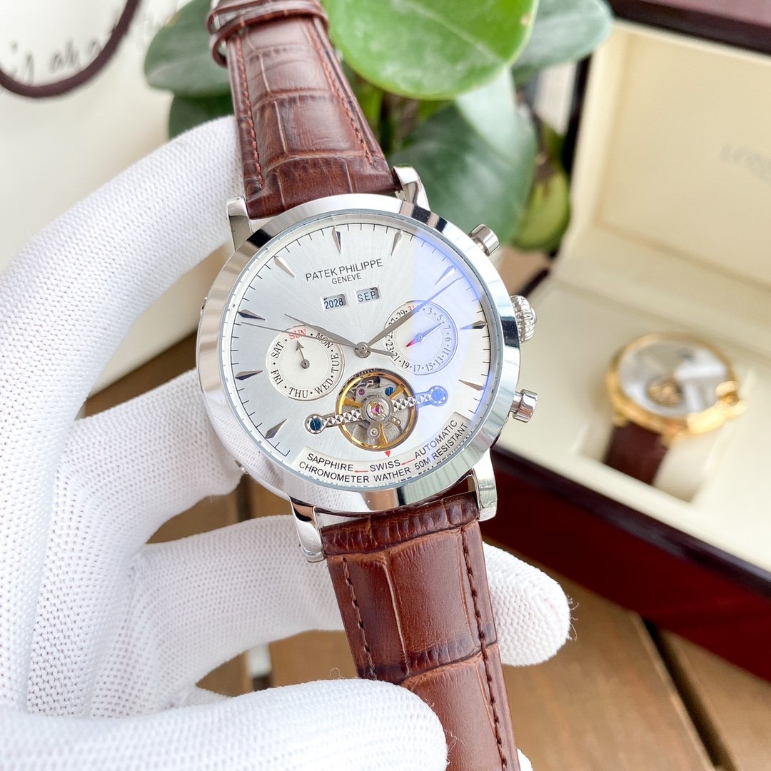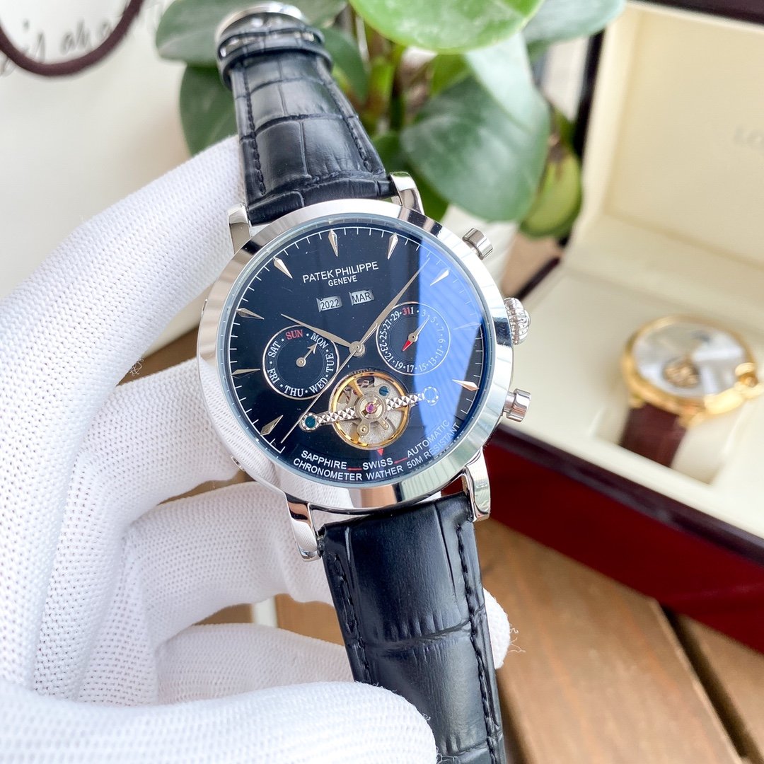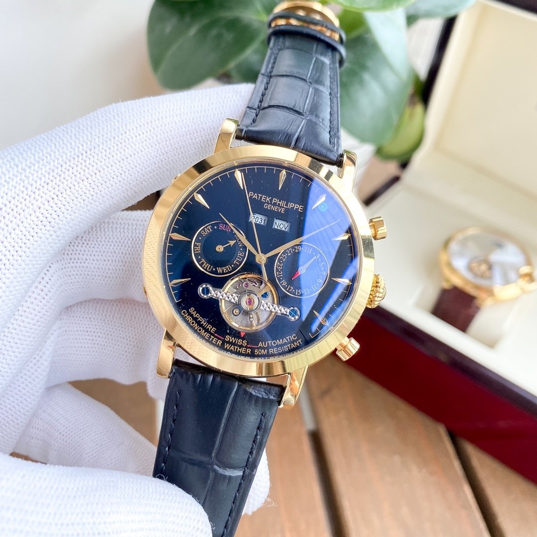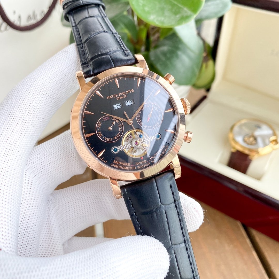 PATEK ANNUAL CALENDAR 42MM TOURBILLON LEATHER STRAP
