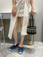 CHLOÉ LOAFERS IN NAVY BLUE FABRIC AND RAFFIA