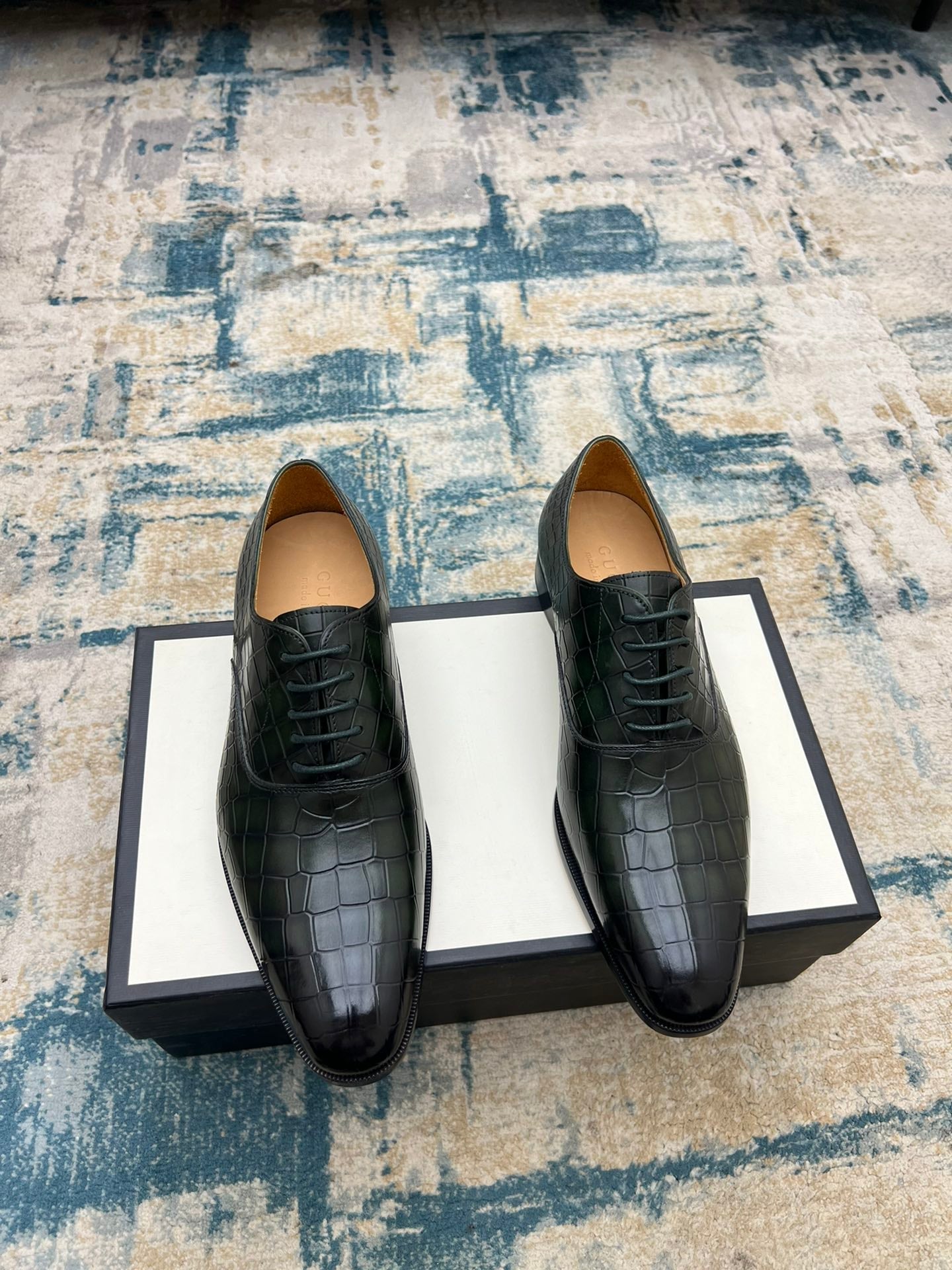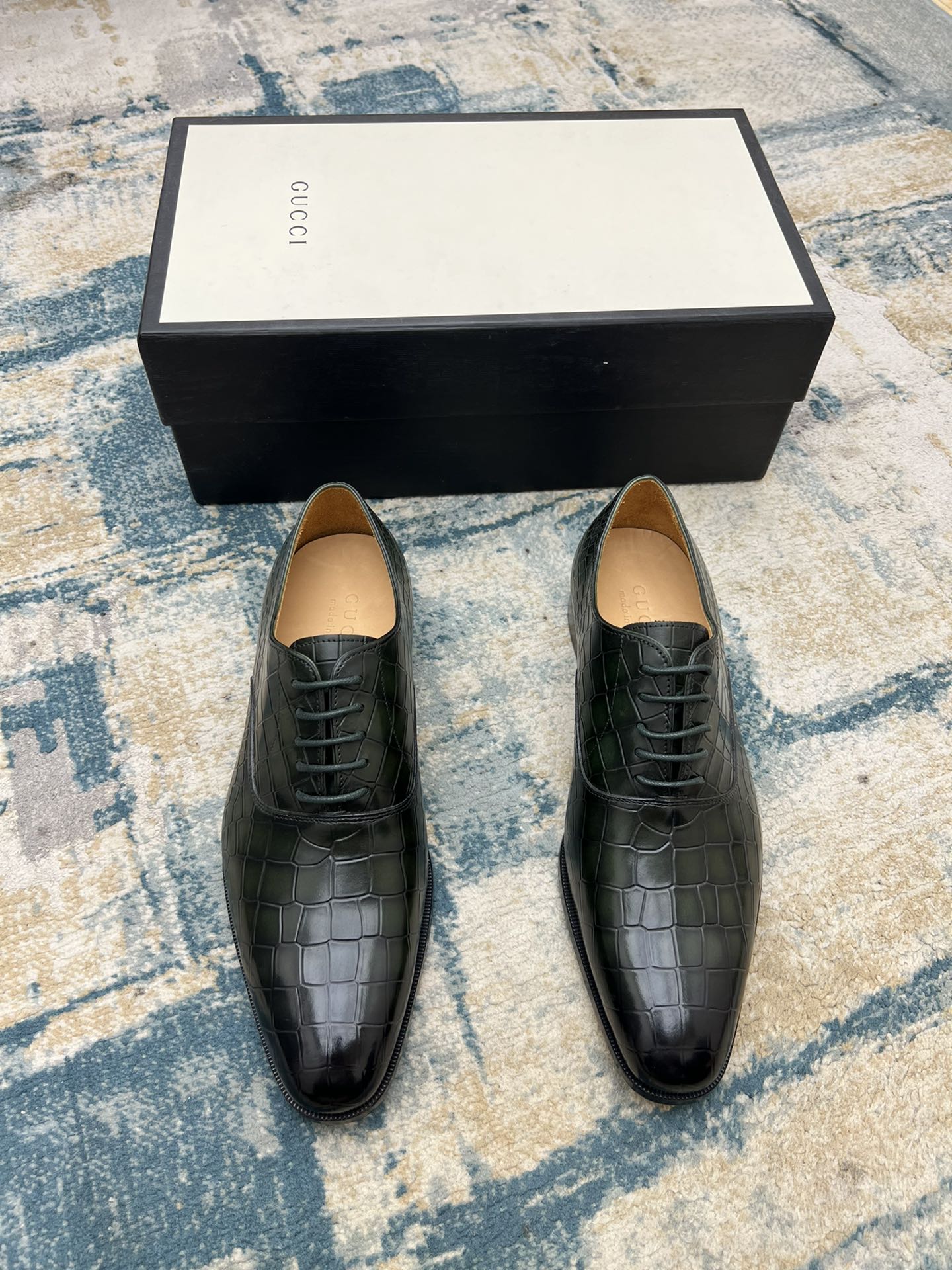 GG Men's Dress Shoe Green Crocodile Embossed Calfskin 533109