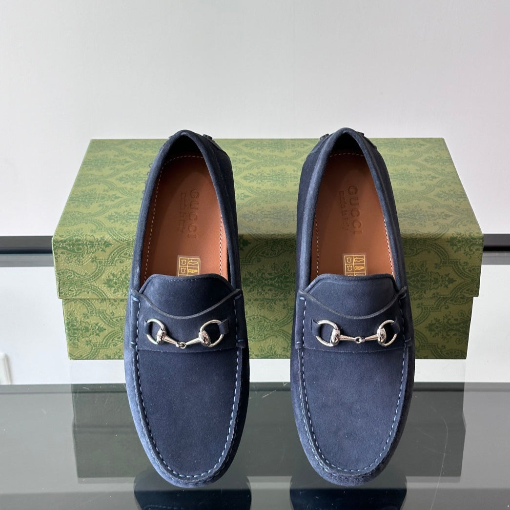 GG Men's Horsebit Loafer Navy Blue Suede 543472