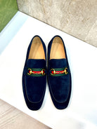 GG Men's Horsebit Loafer Navy Blue Suede 550325